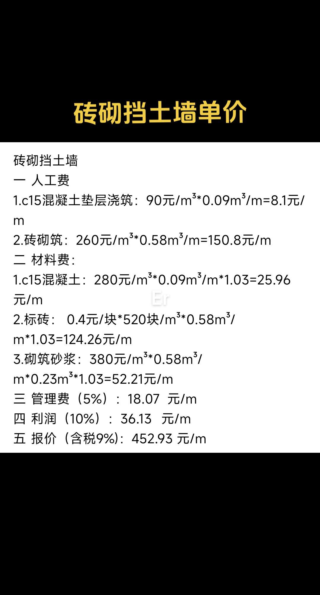 钢筋混凝土挡土墙工程预算方案