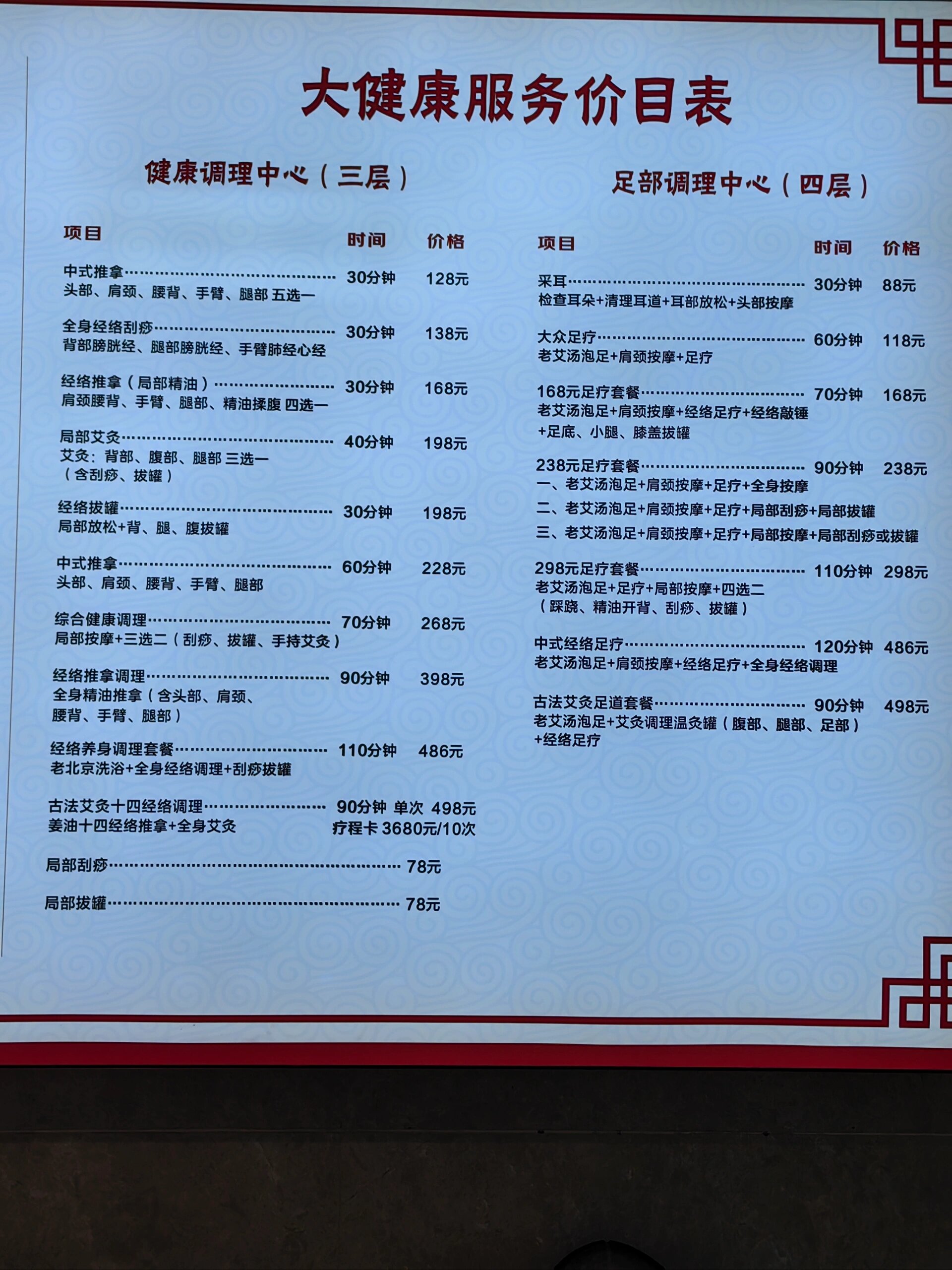 清华池价目表 修脚