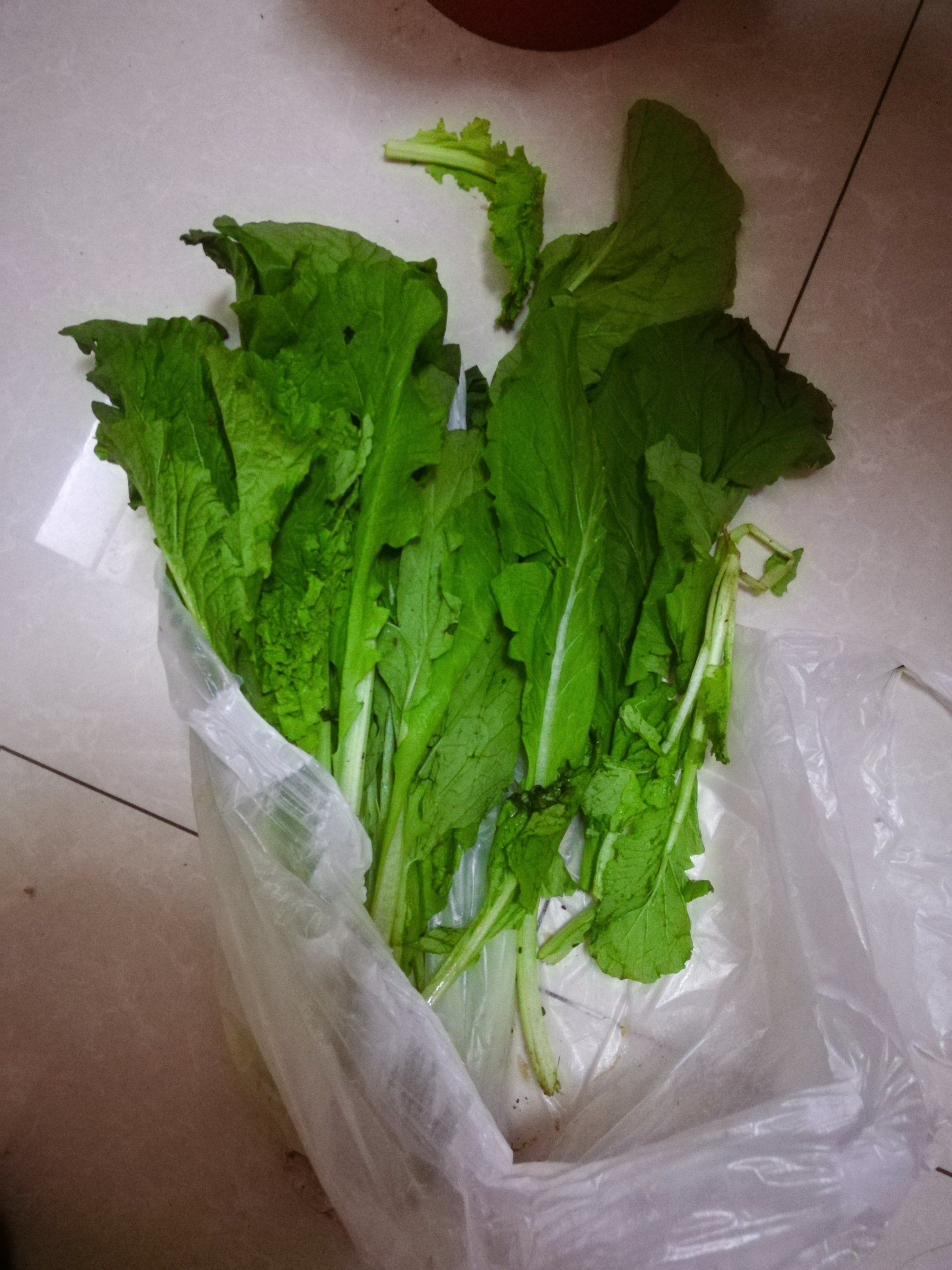 今天买的青菜,不知道在卖家那里存了多少天了,烂油麦7块钱一斤