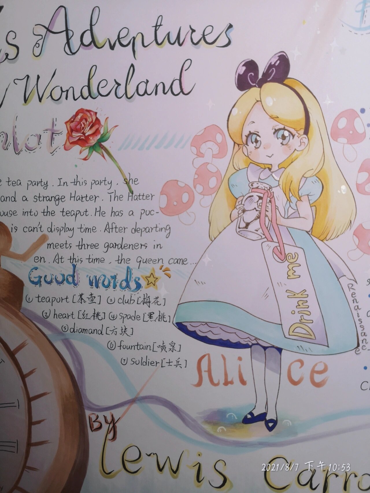 爱丽丝梦游仙境英文手抄报小报一等奖.#爱丽丝梦游仙境#爱丽丝