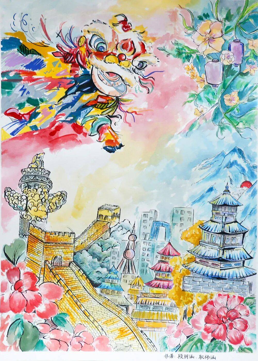 这些元素是同学们爱国情怀的具象表达,他们以画为语,诉说着对祖国繁荣