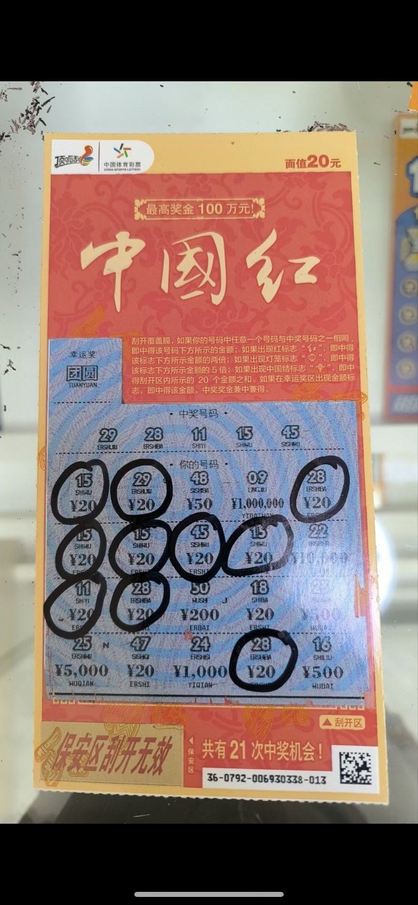 广东幸运的中得了2注,其中中国福利彩票组六要选几个号码014996状元红