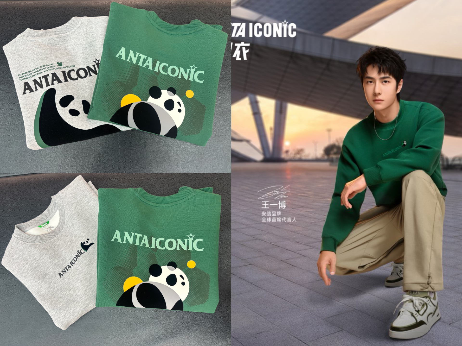 翠绿翠绿的卫衣加上可爱的大熊猫,穿在了我们一博身上!