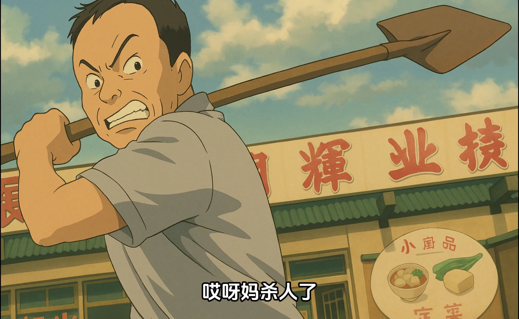 王老七一拿铁锹,谢广坤拔腿就跑