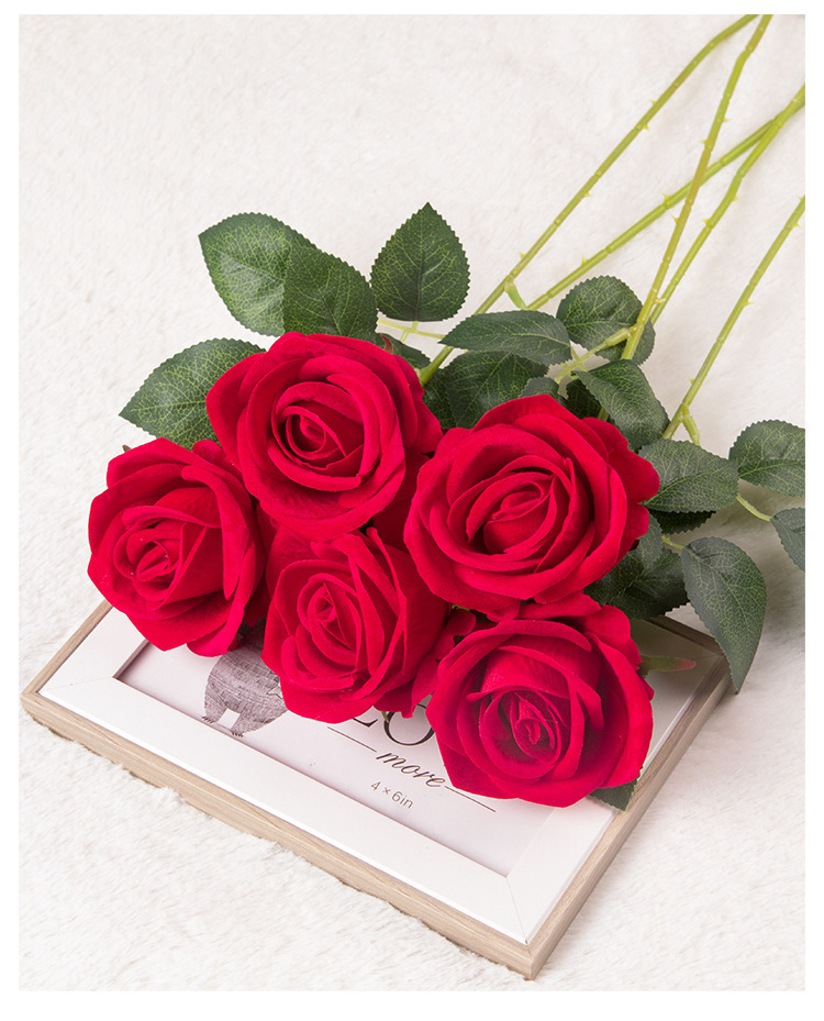 仿真玫瑰花单支 七夕节家居婚礼装饰花墙仿真花假花人造手感绒布