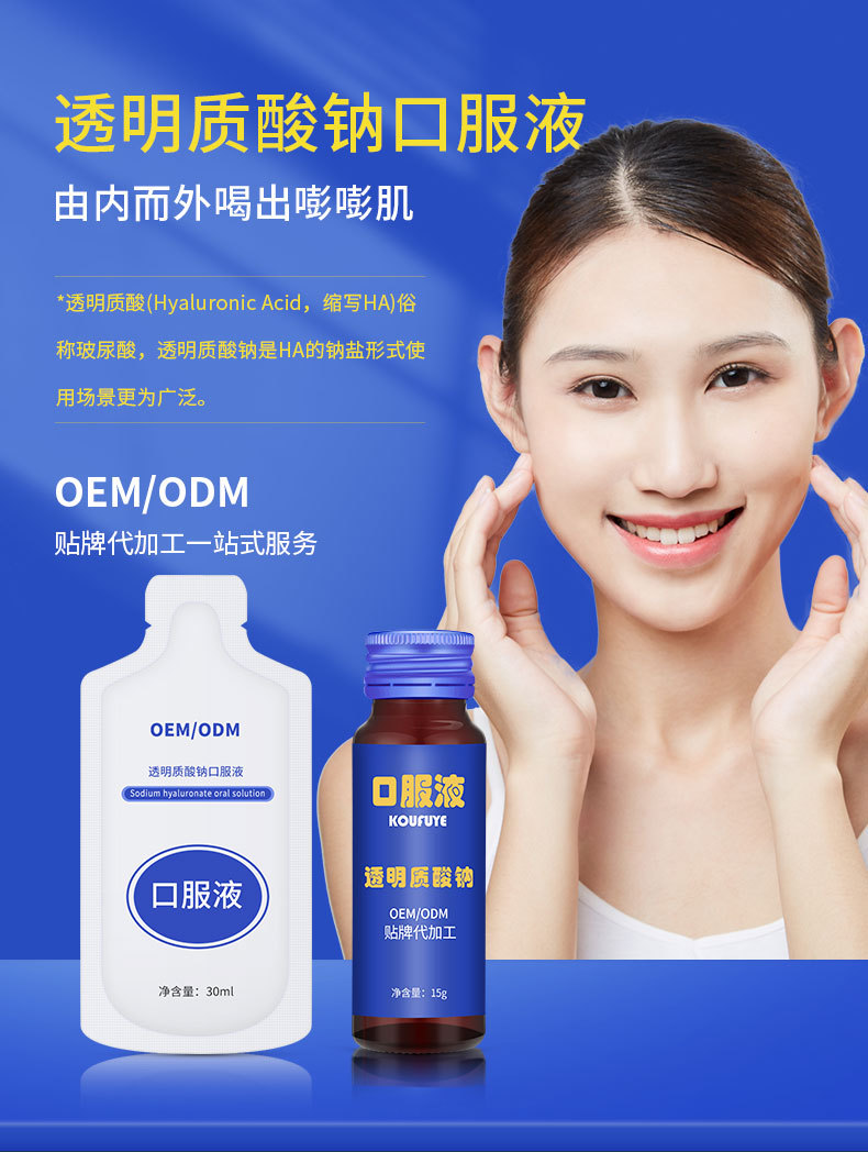 玻尿酸口服液饮品加工透明质酸钠口服液原液胶原蛋白小分子胶原肽
