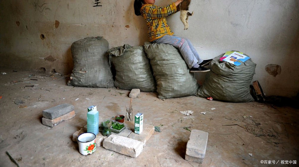 还有中国 贫穷中国贫苦农民孩子与猫狗生活在一起的穷苦图片偏远