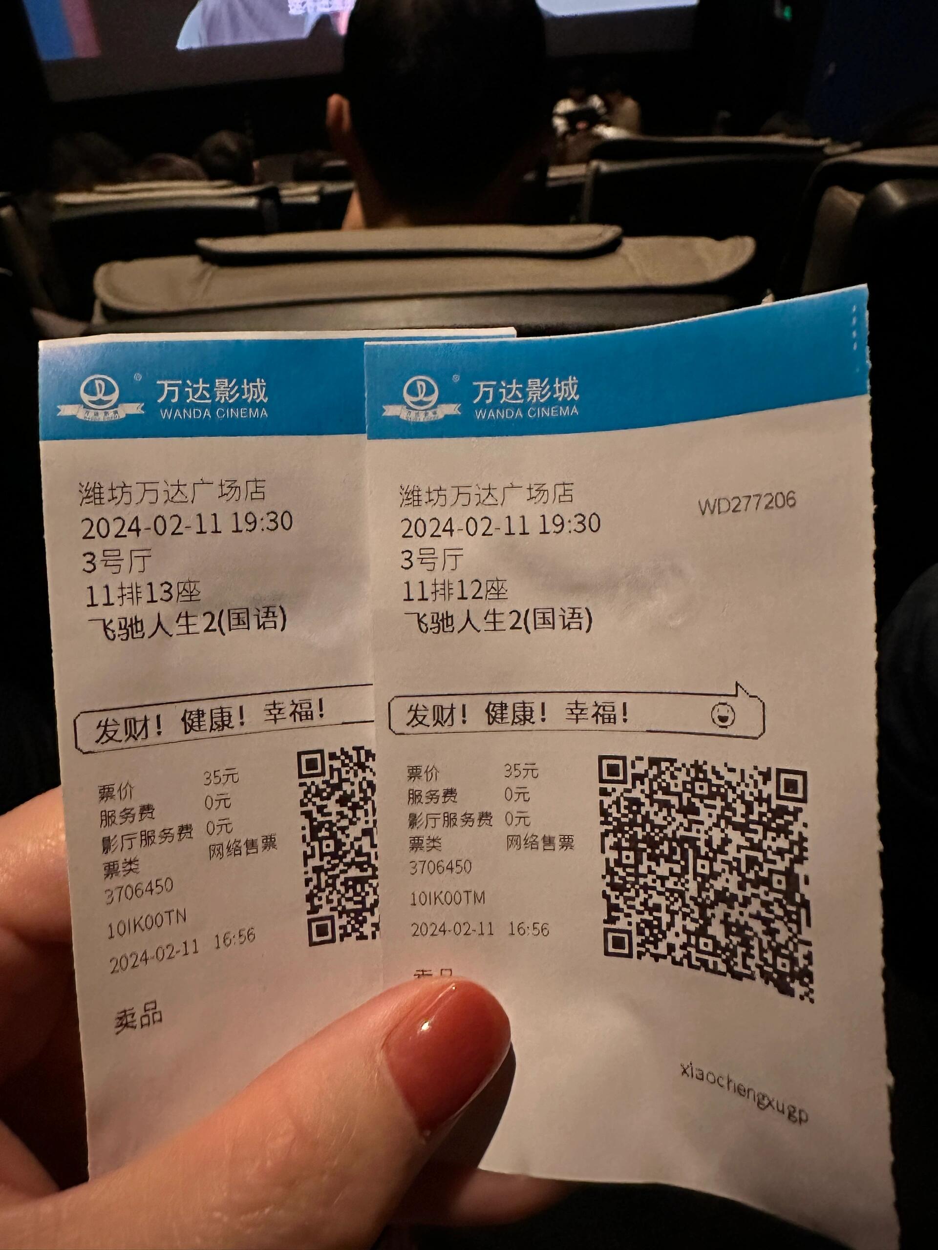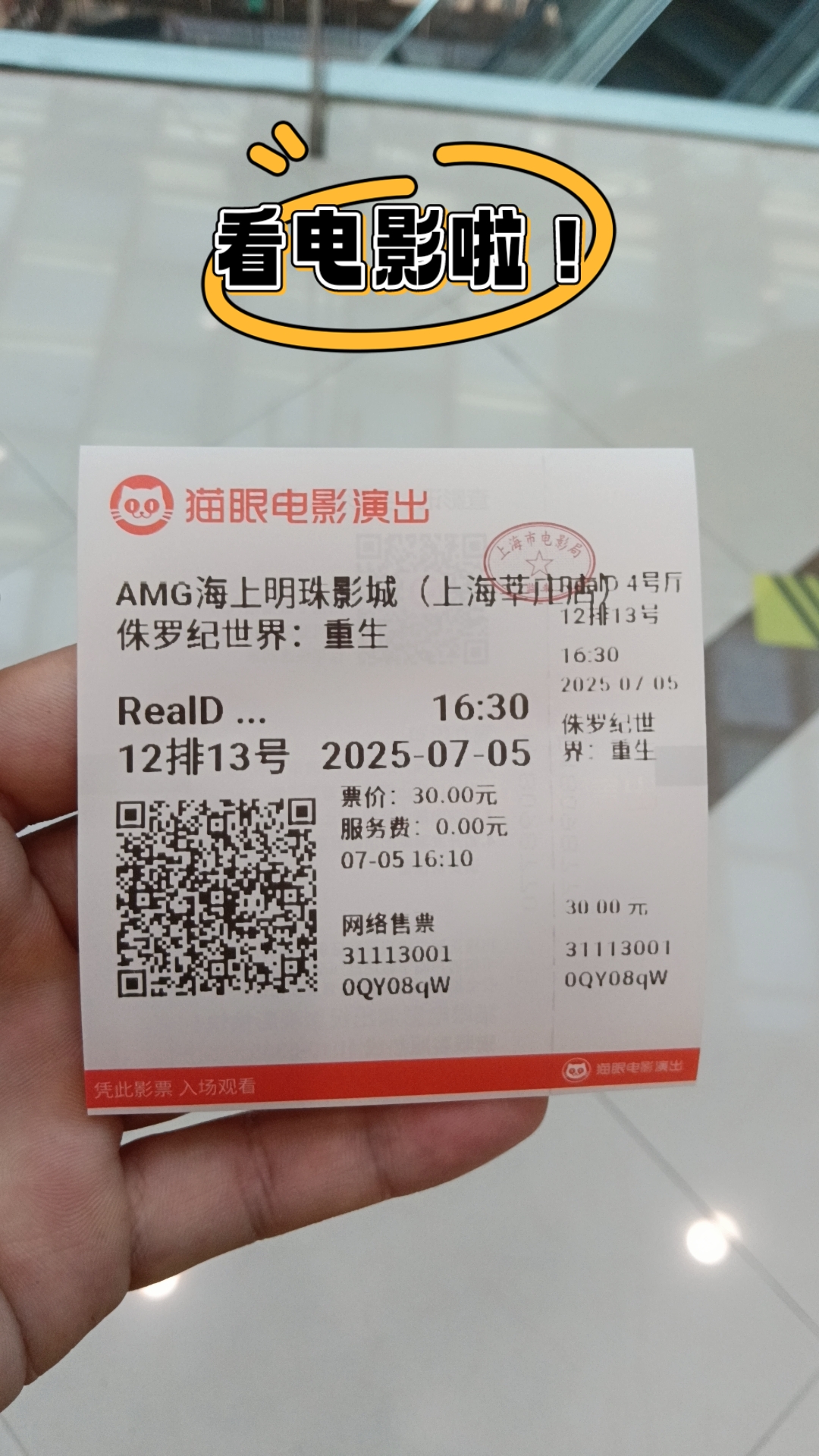 电影票到手!