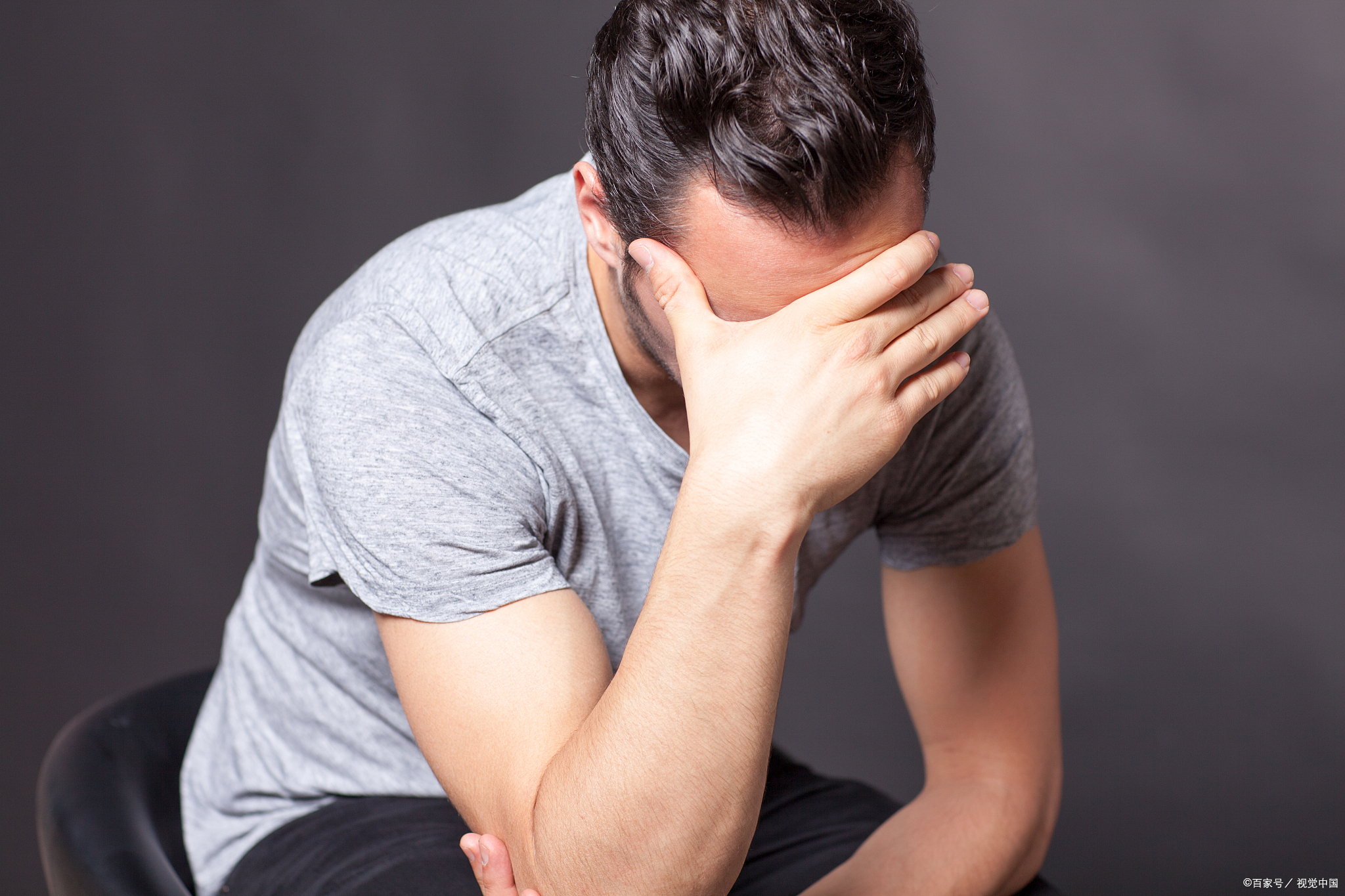 房间内双手抱头哭泣的男人