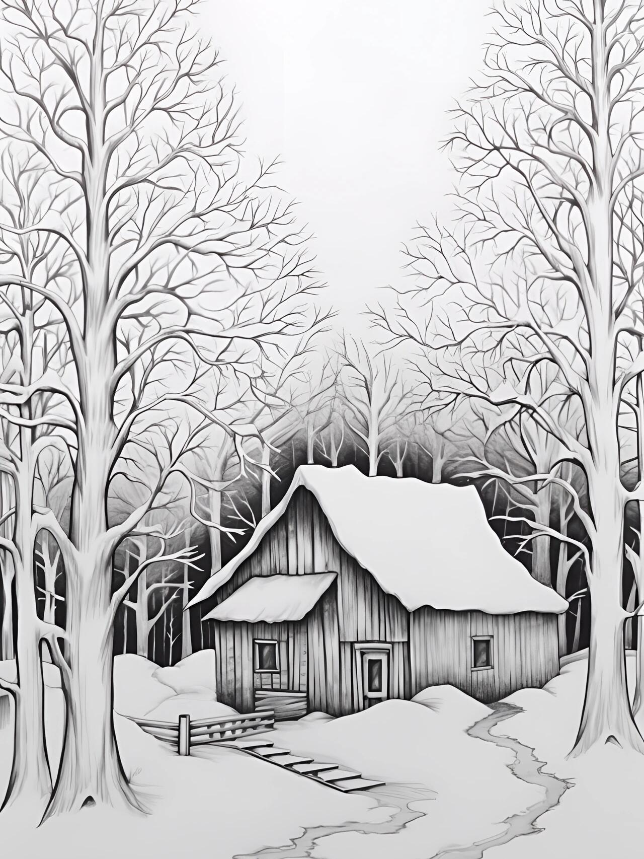 简单线描乡村房子