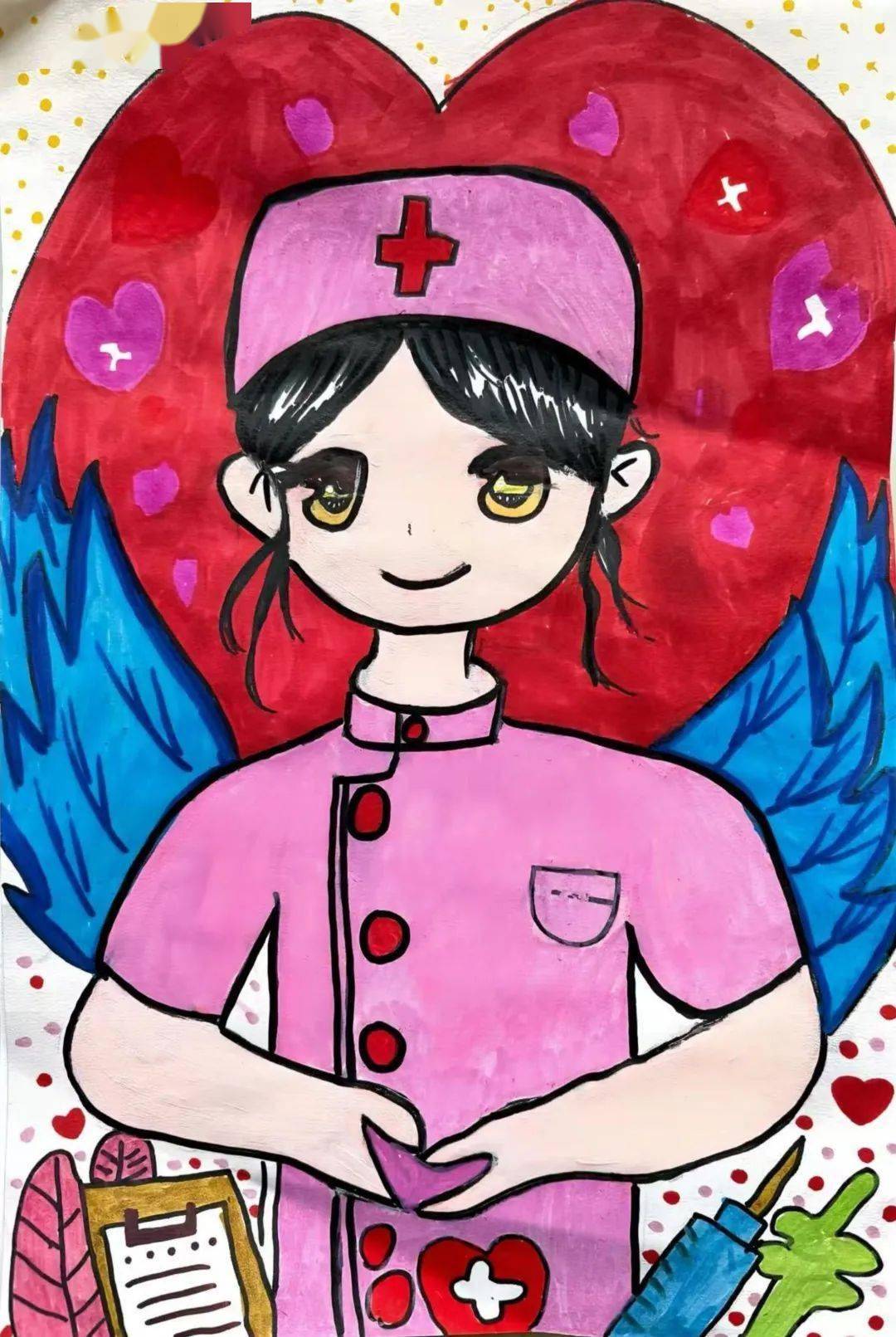 白衣天使 动漫人物儿童画创意画 护士医生