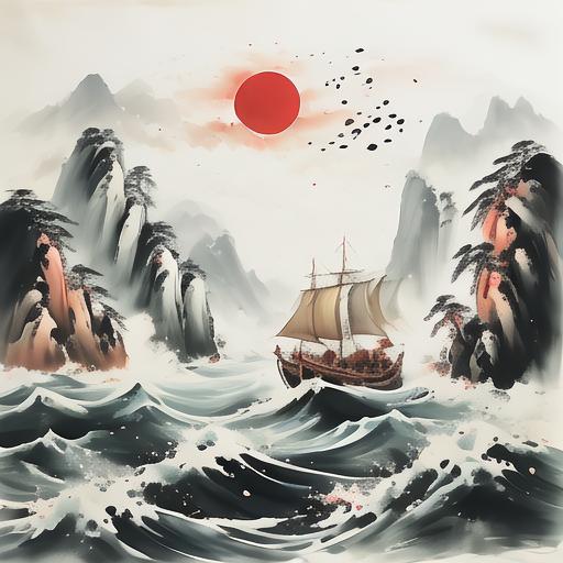 百舸争流水墨