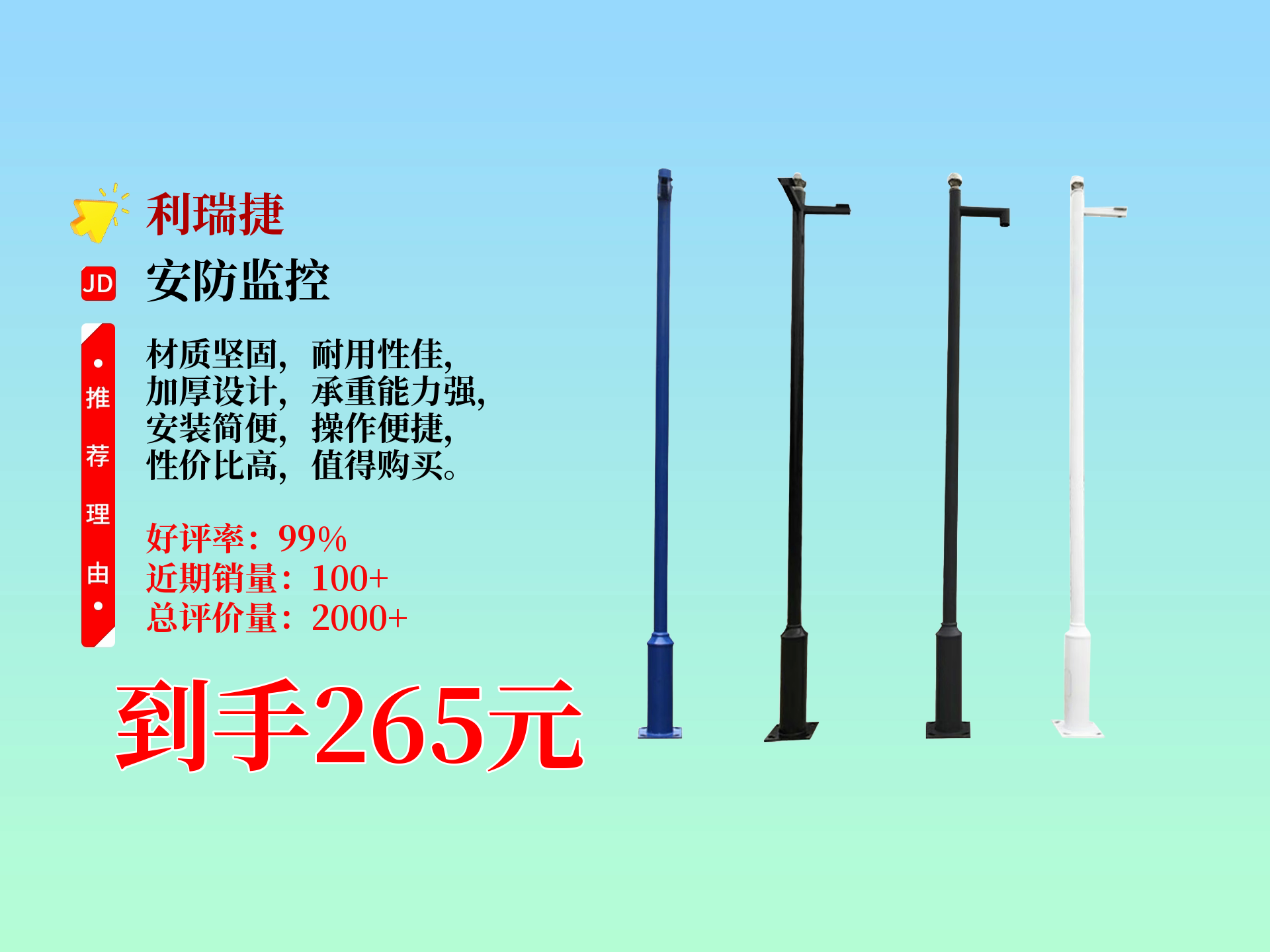 1️⃣ 监控杆,主要用于室外监控摄像机的安装,常见规格为6米高,1