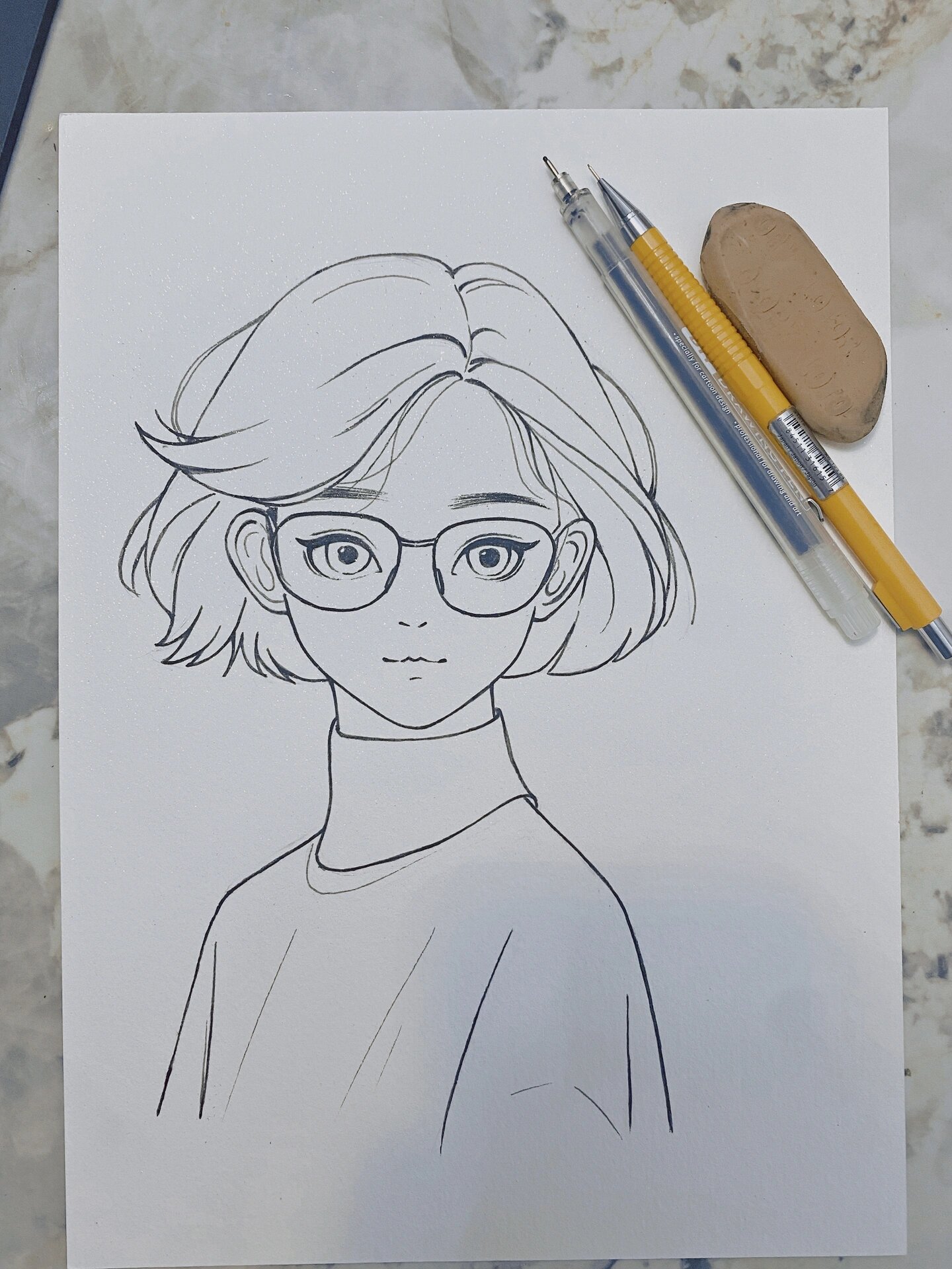 素描短发女生过程.试用了新的方形素描本本涂了一张