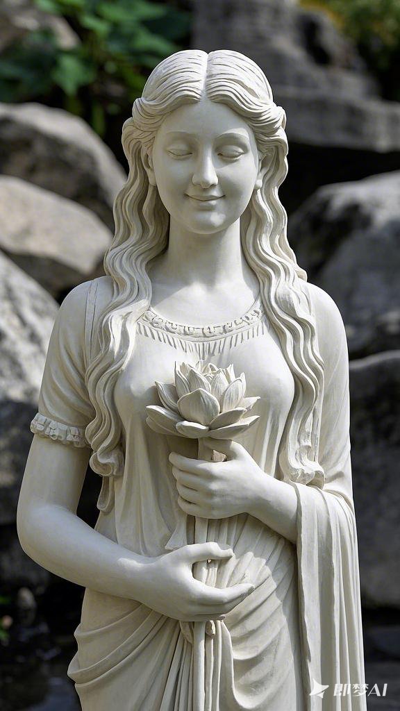 雕像以纯净的石膏塑造,艺术家通过精巧的刀法和细腻的