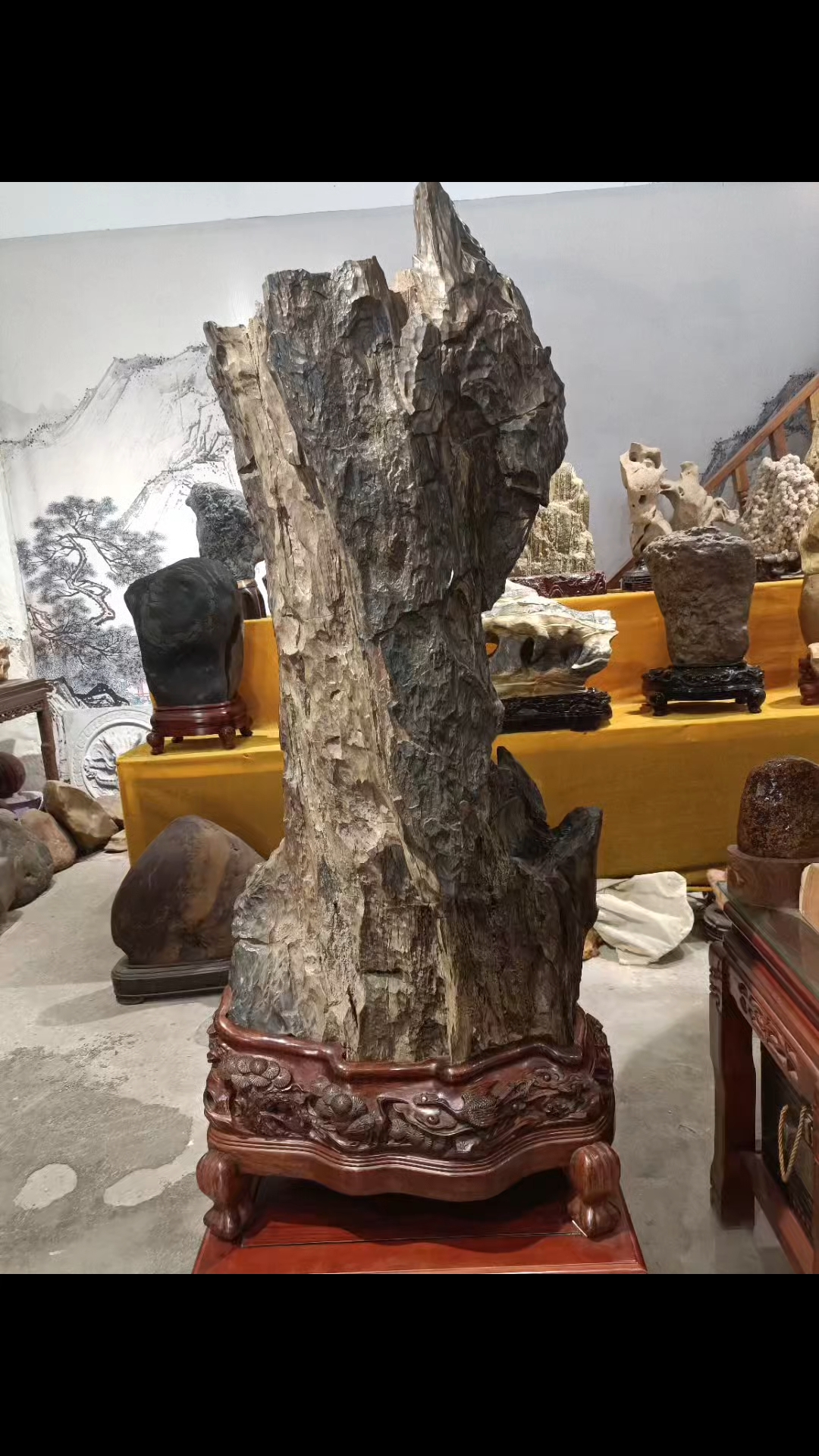 776斤独秀峰精品树化玉硅化木配送香樟木底座