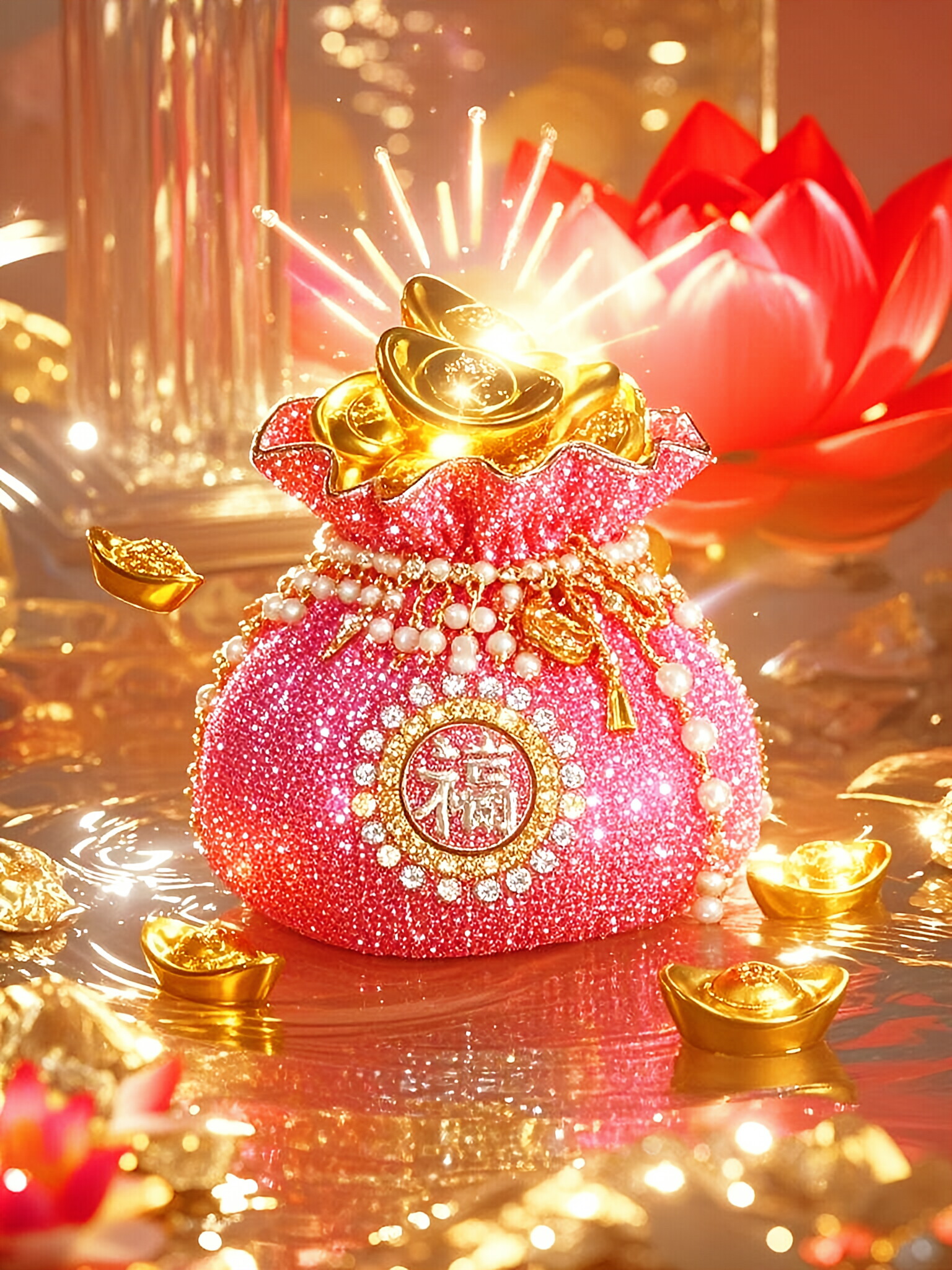 做壁纸手机锁屏背景墙的精美图片,钱袋子上带有福字的图片