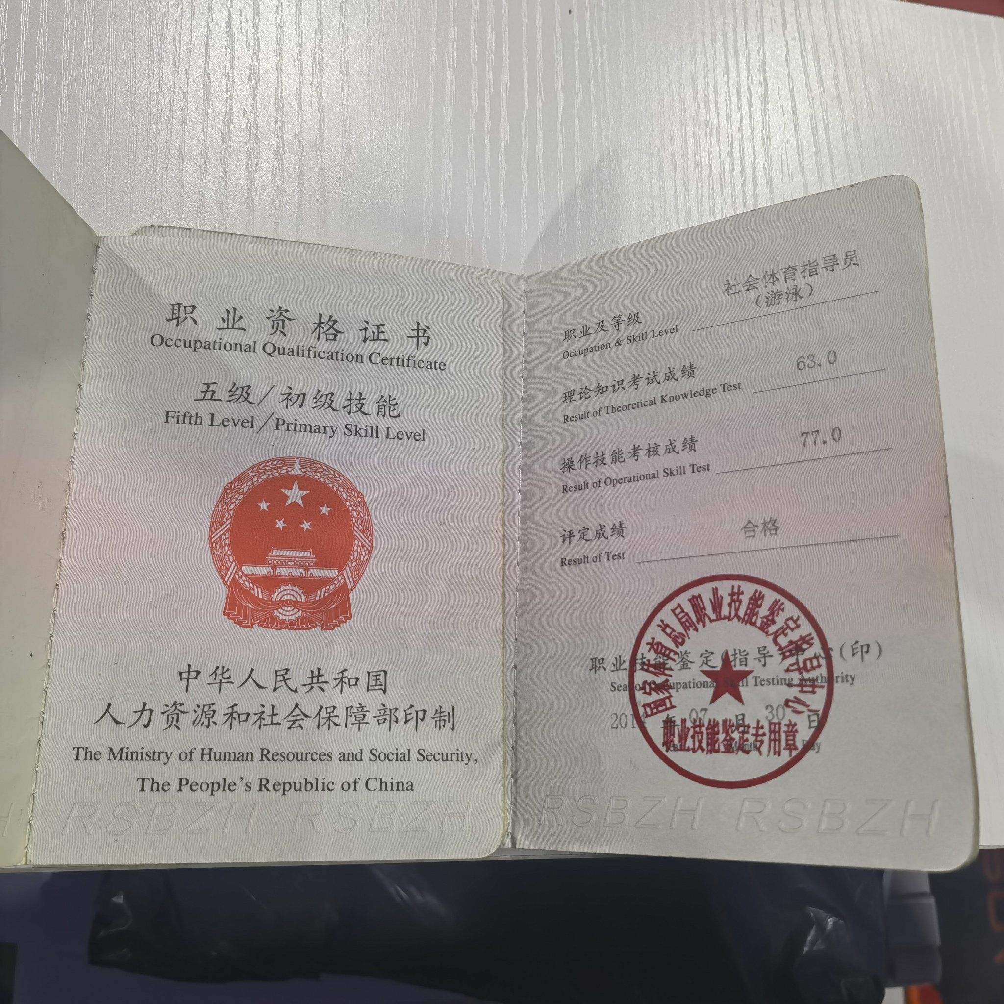 今天拿到了教练证书