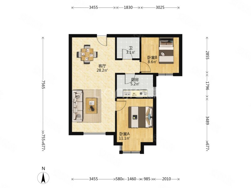 万达住宅a区3室2厅2卫122.07㎡南北219万