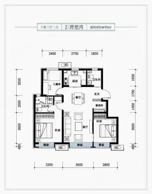 万达华府景园3室2厅户型图
