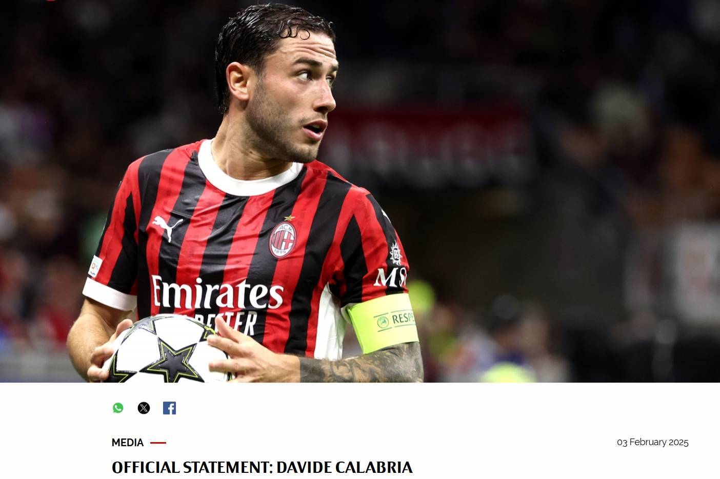 卡拉布里亚续约谈判陷入停滞,ac米兰又一名队长或自由身离开