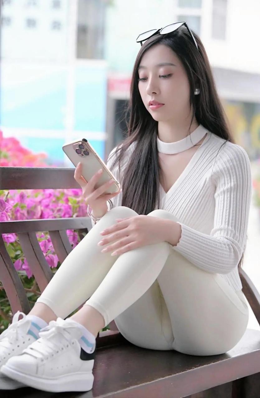 白色紧身裤大长腿美女