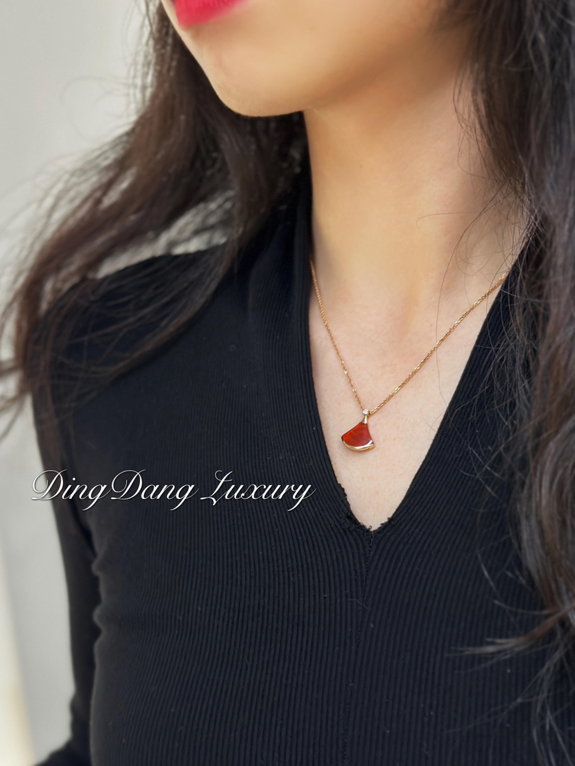 宝格丽 红玉髓扇子 裙子项链 18k金天然钻石
