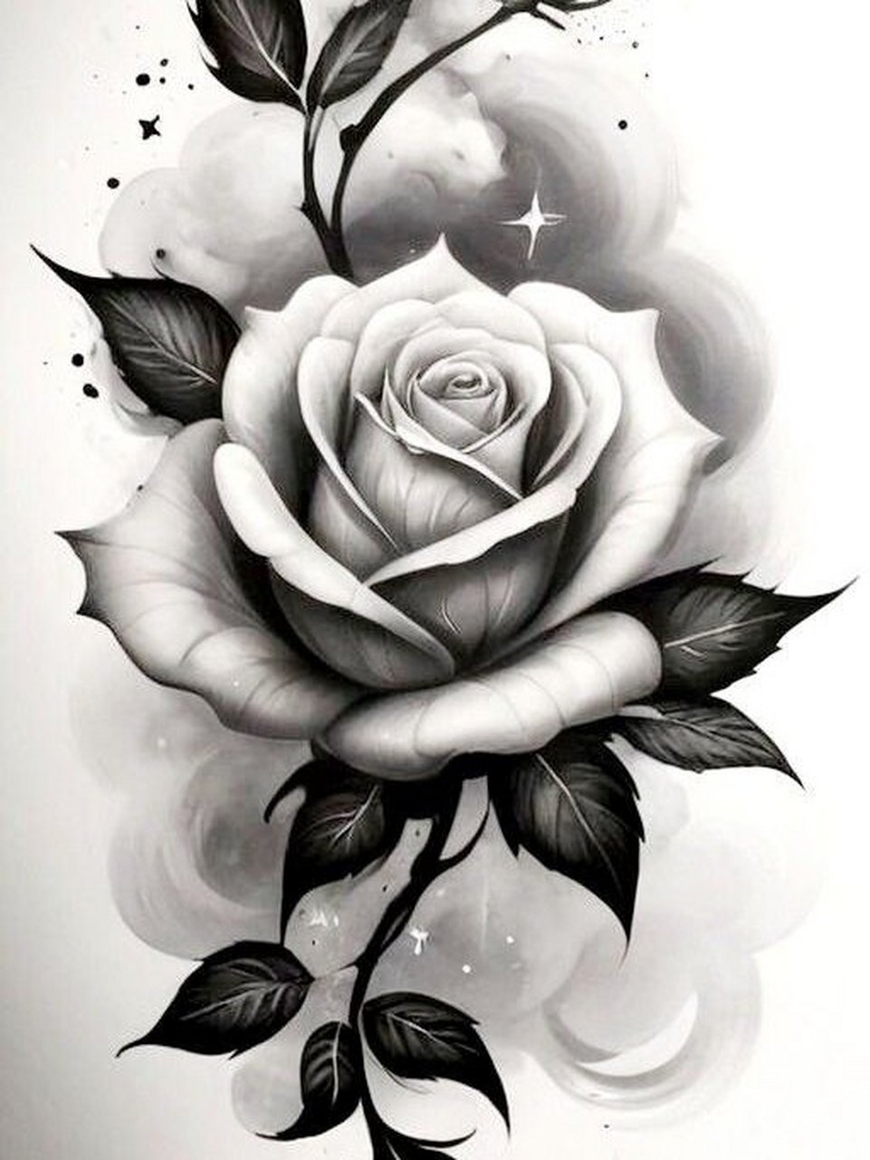 每天坚持一个素花稿:十字构图的玫瑰纹身