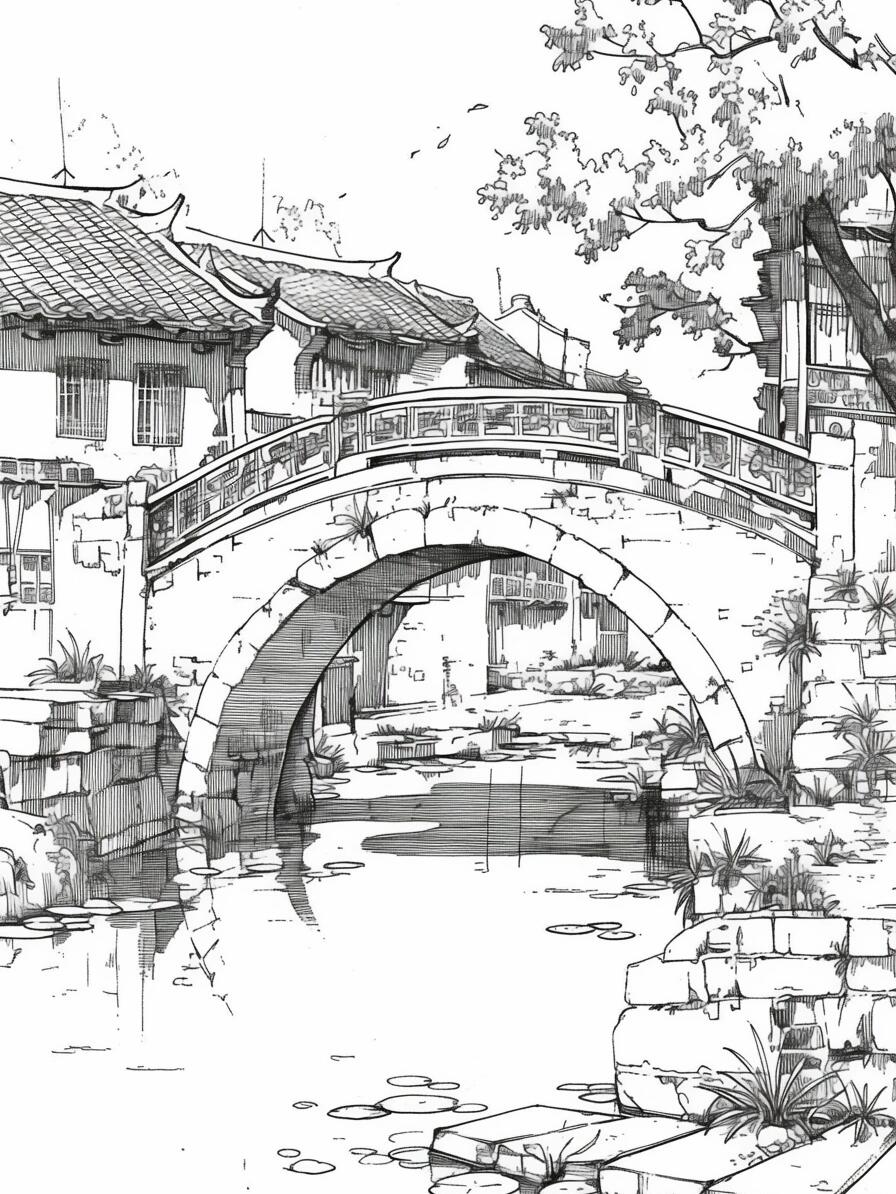 🎨 创意线描装饰画:赵州桥的魅力再现