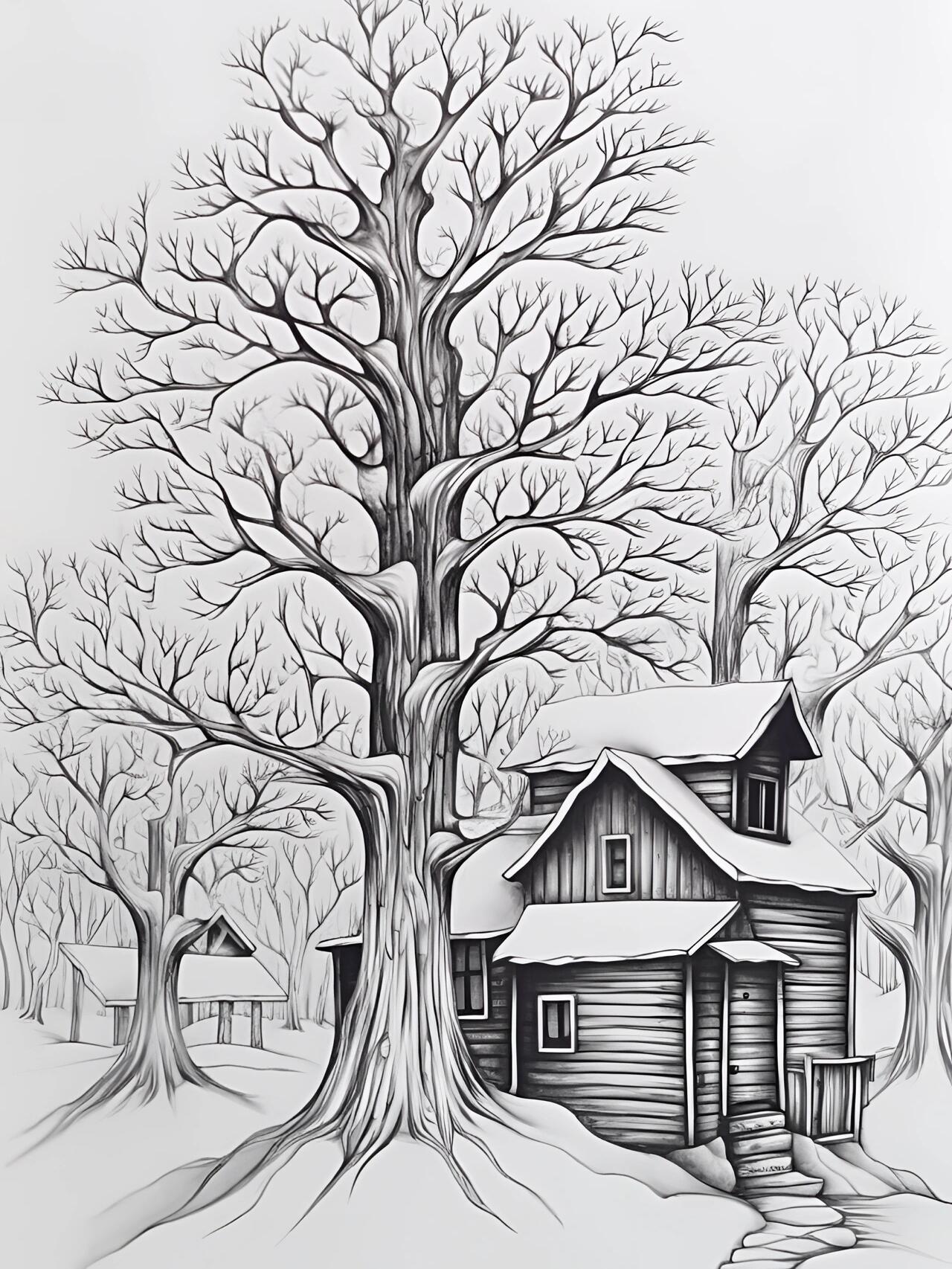 线描画《蘑菇房子》