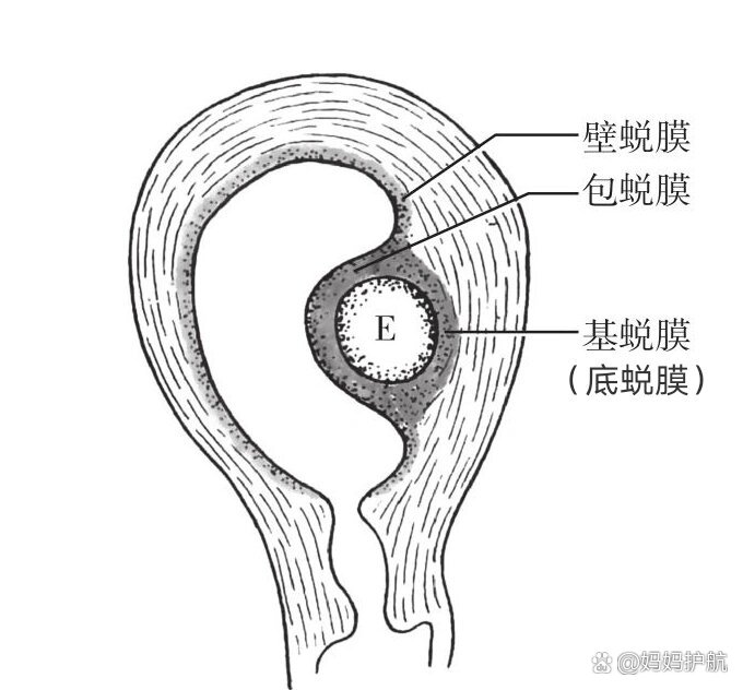 受精卵四面八方的墙就是蜕膜(底,包,壁)包蜕膜后期和绒毛膜融合了