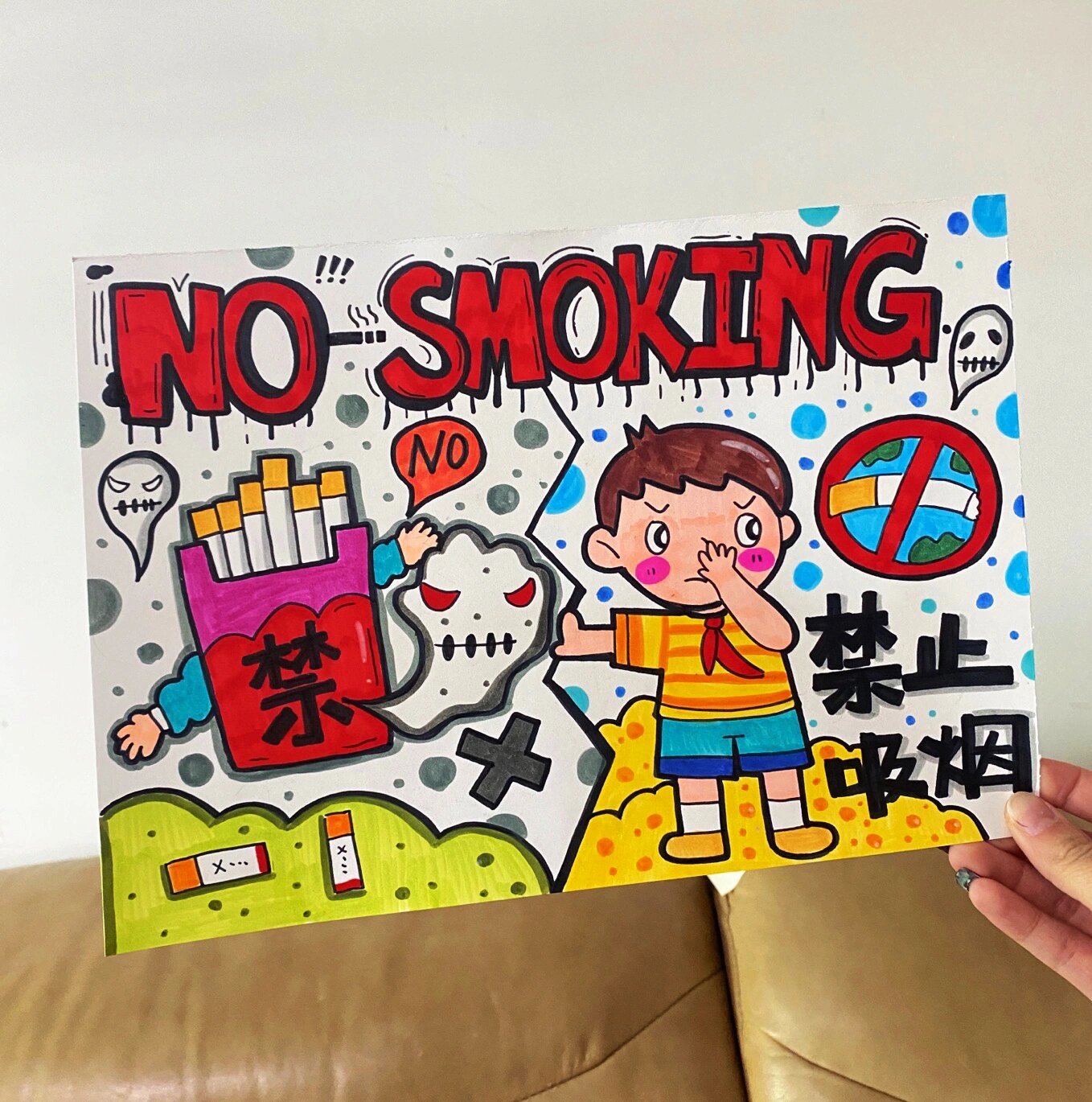 同学们创作精致有创意的绘画,展现出同学们对禁烟,控烟的支持,彰显了