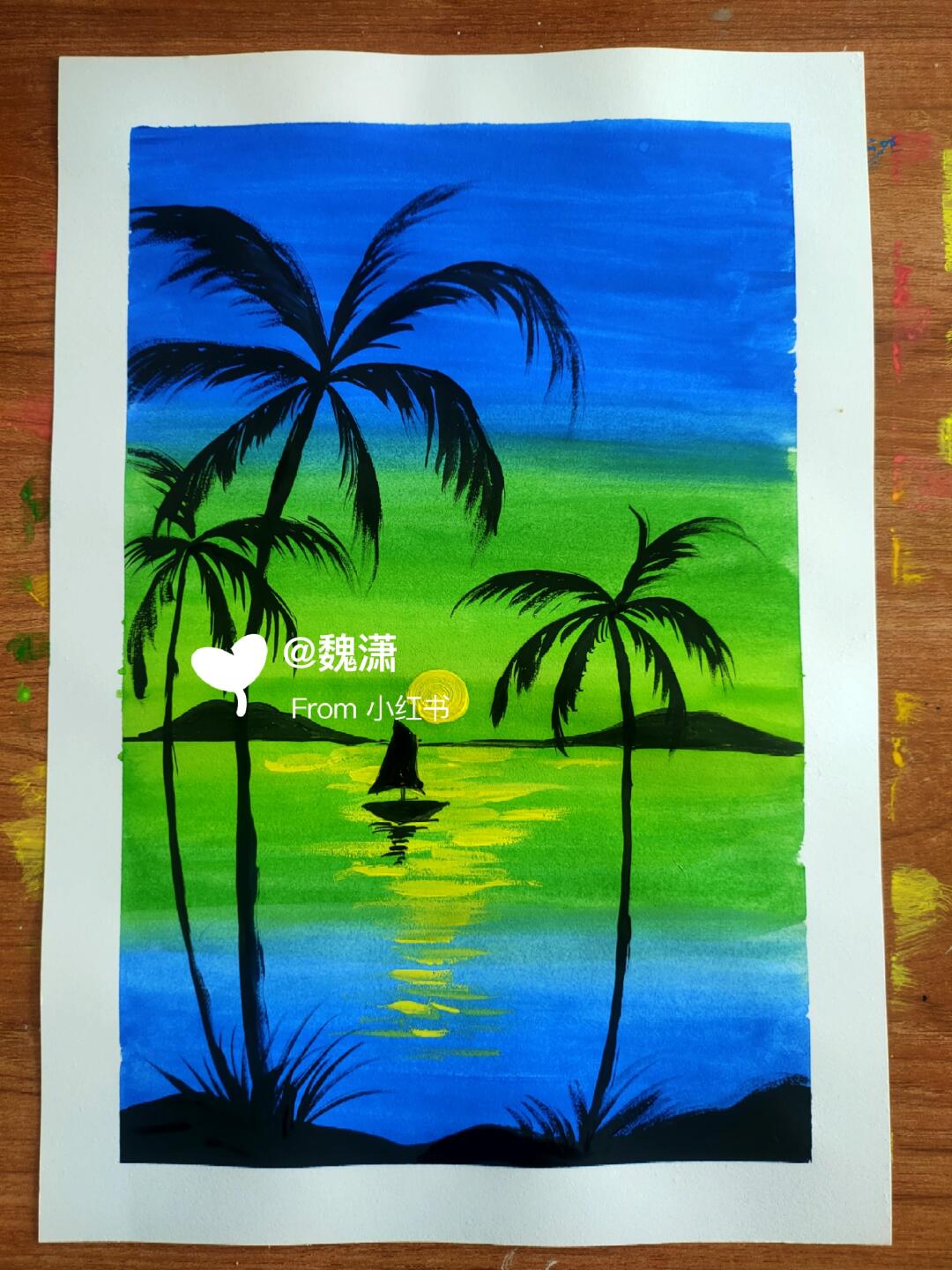 绘画工具:宝菲凡净味丙烯颜料,调色盘,尖头丙烯笔,16k水粉纸