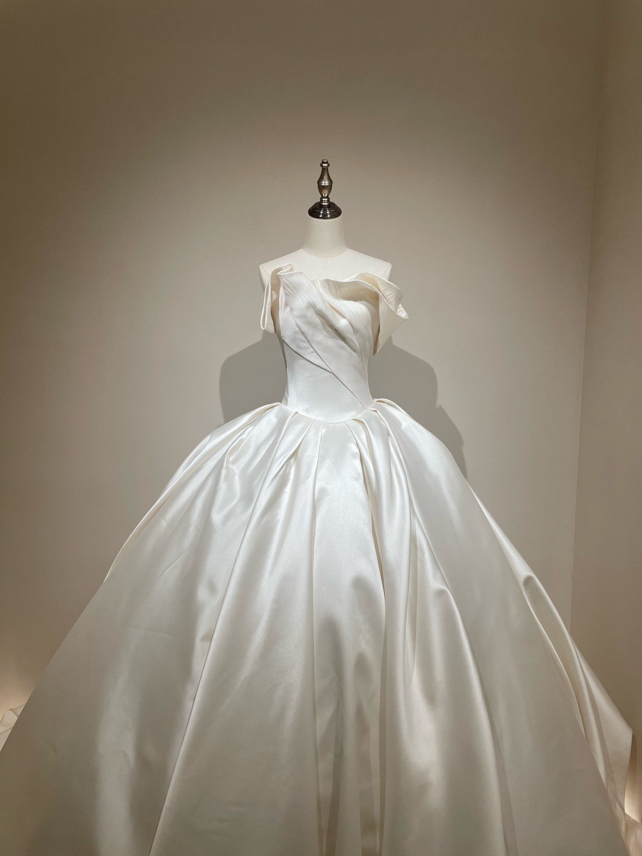高级缎面婚纱今天你get了嘛 一字肩缎面婚纱极简风格