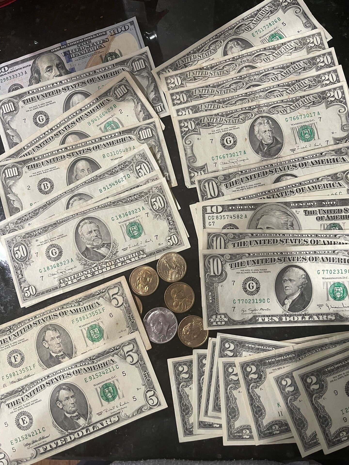 去银行换的美元,7张,5100块钱