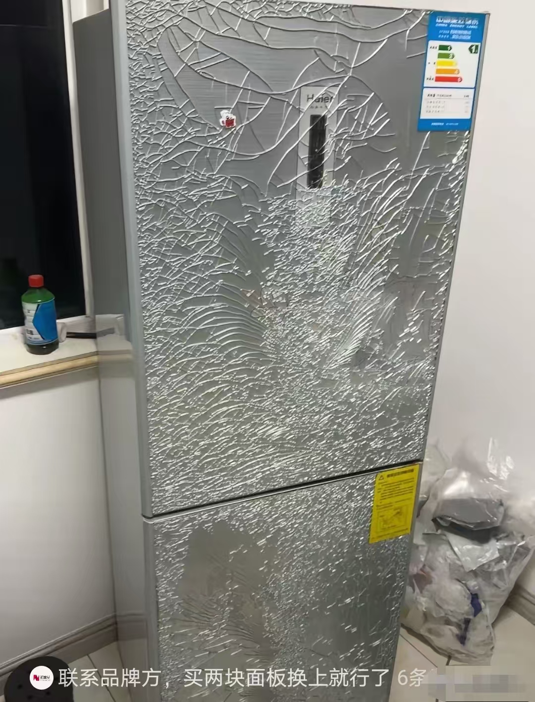 美菱冰箱买了不到两年,凌晨四点冰箱门突然爆裂,商家推卸责任