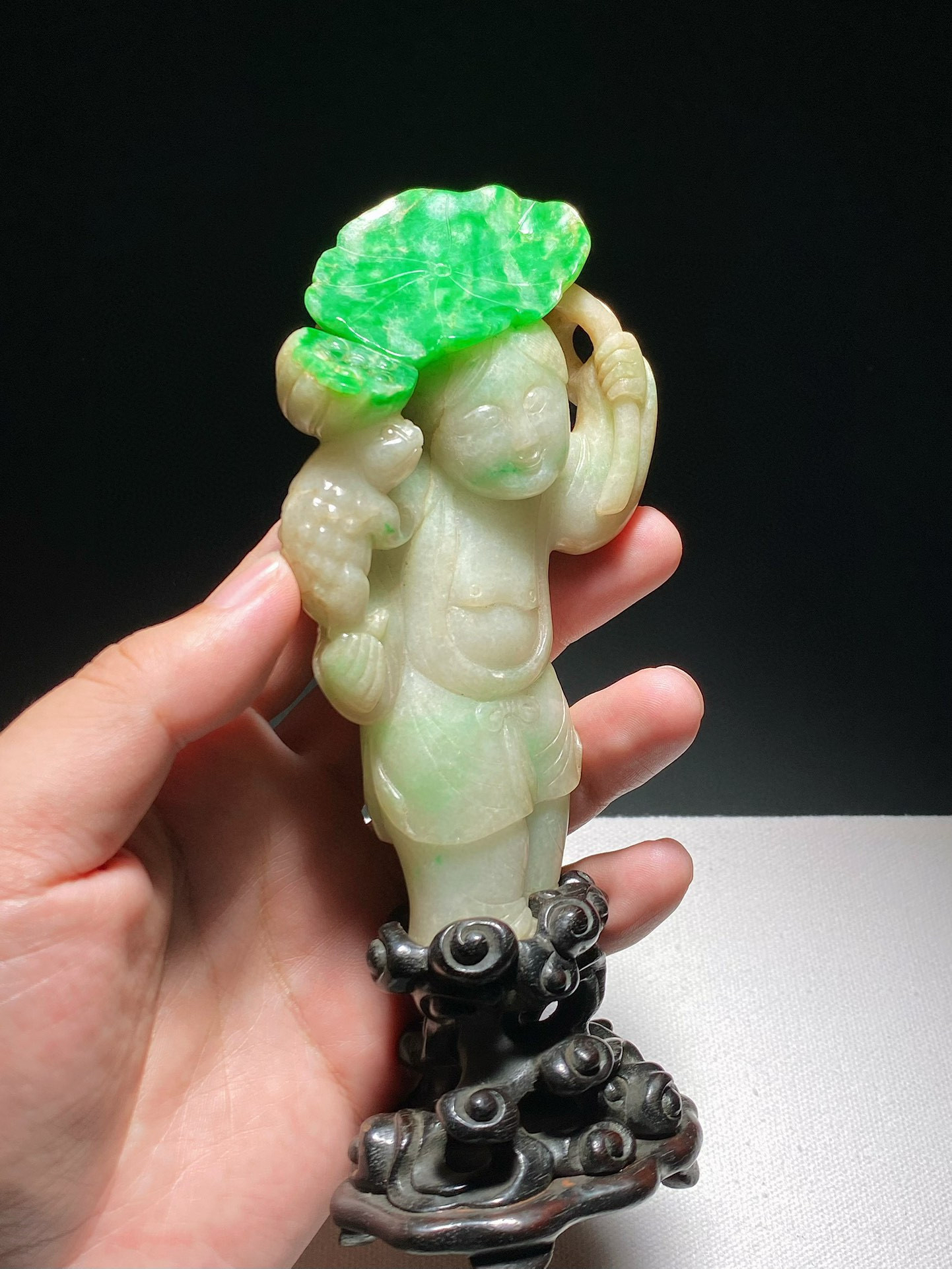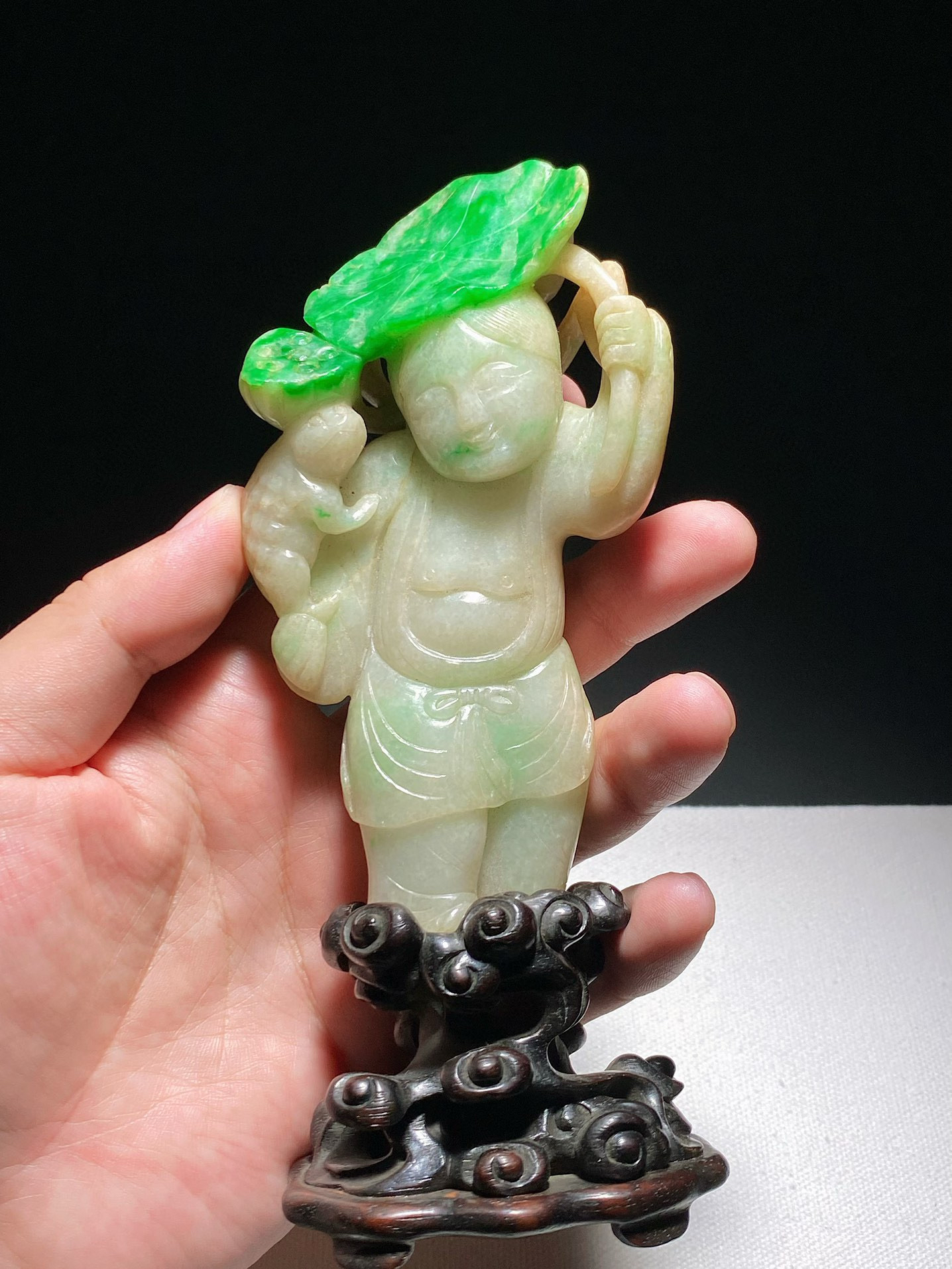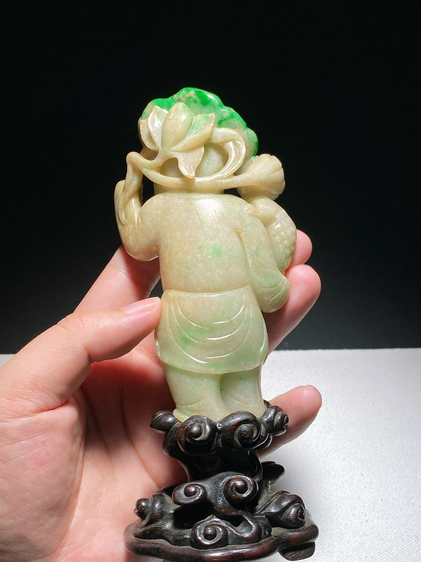 难得一遇的清代翡翠 持莲童子