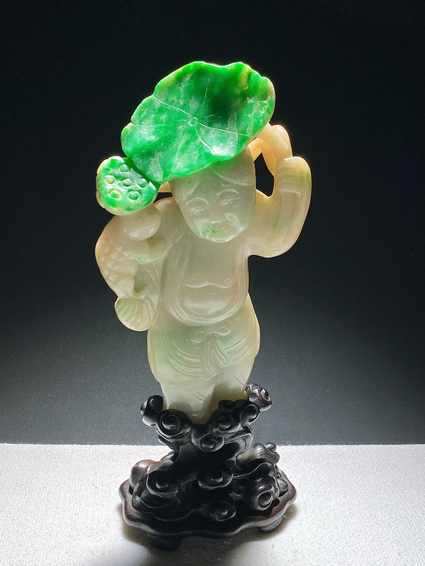 老坑翡翠抱鱼童子