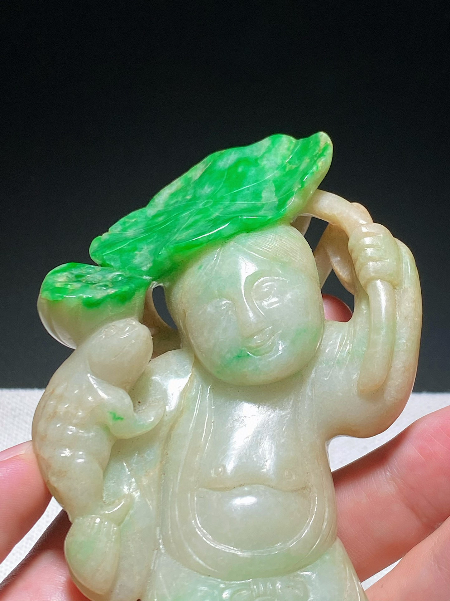 翡翠白月光《莲花童子》挂件