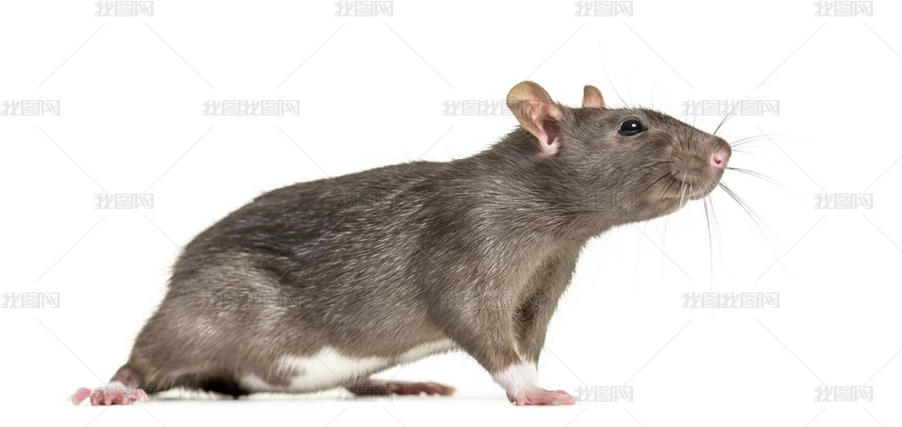 灰色老鼠站立在白色背景前