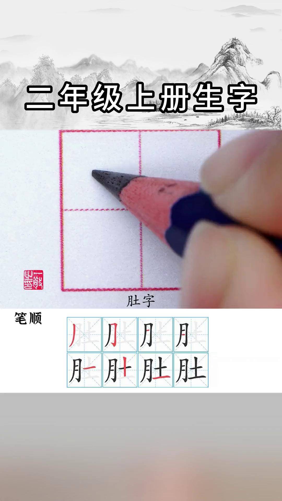 硬笔楷书"肚"字书写技巧详解