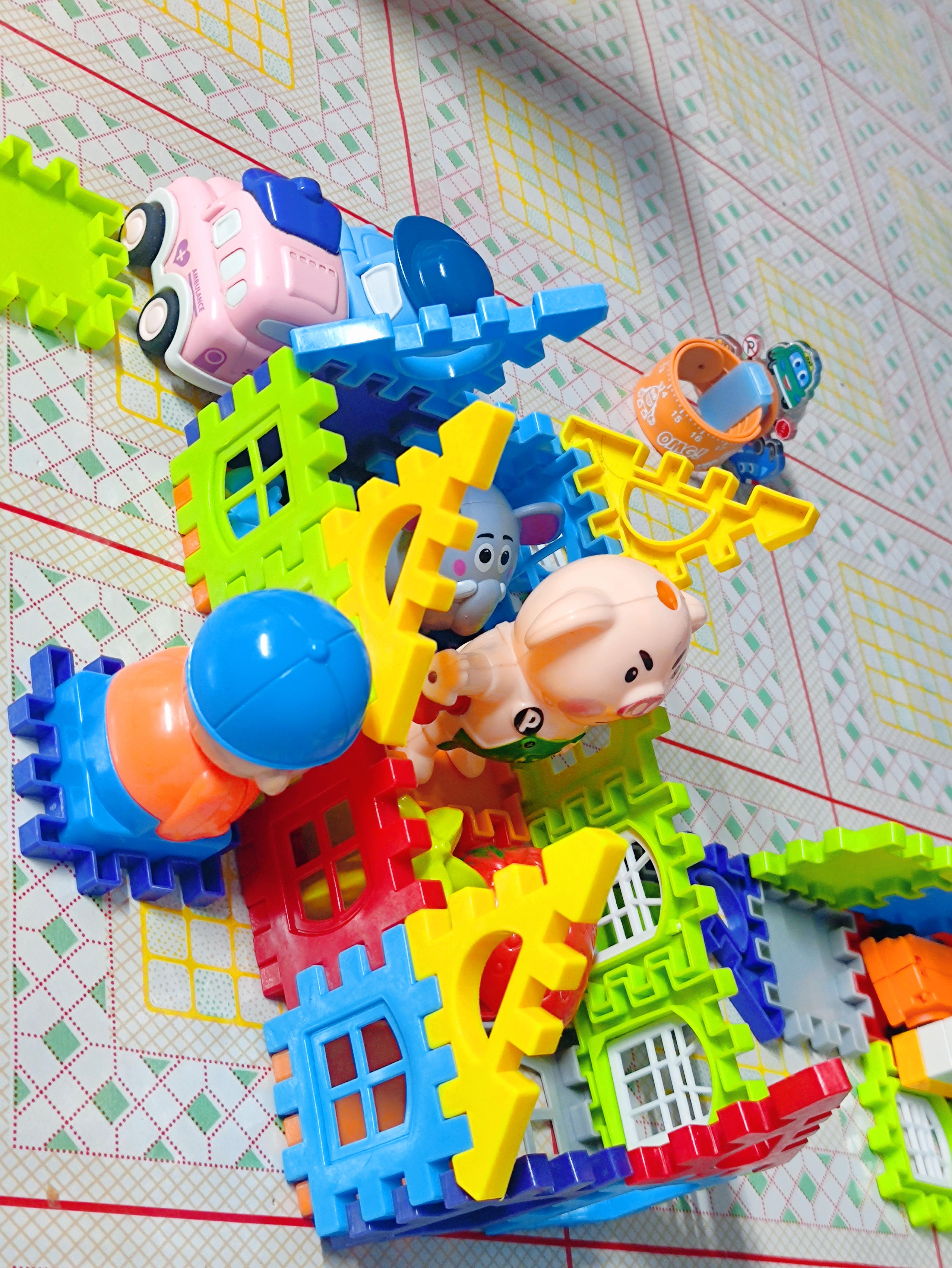 育儿宝 大颗粒积木玩具diy儿童多功能积木桌益智拼装学习桌