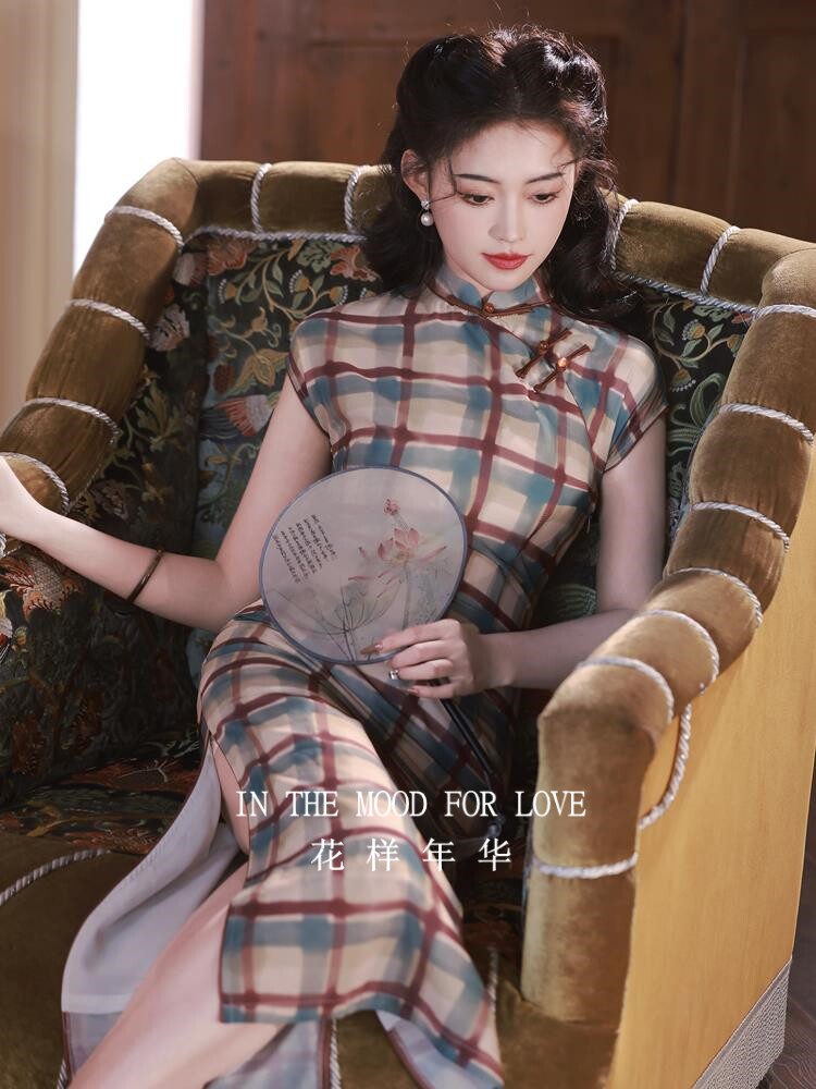 【【花样年华旗袍】春夏季长款新中式格子2024民国改良少女连衣裙