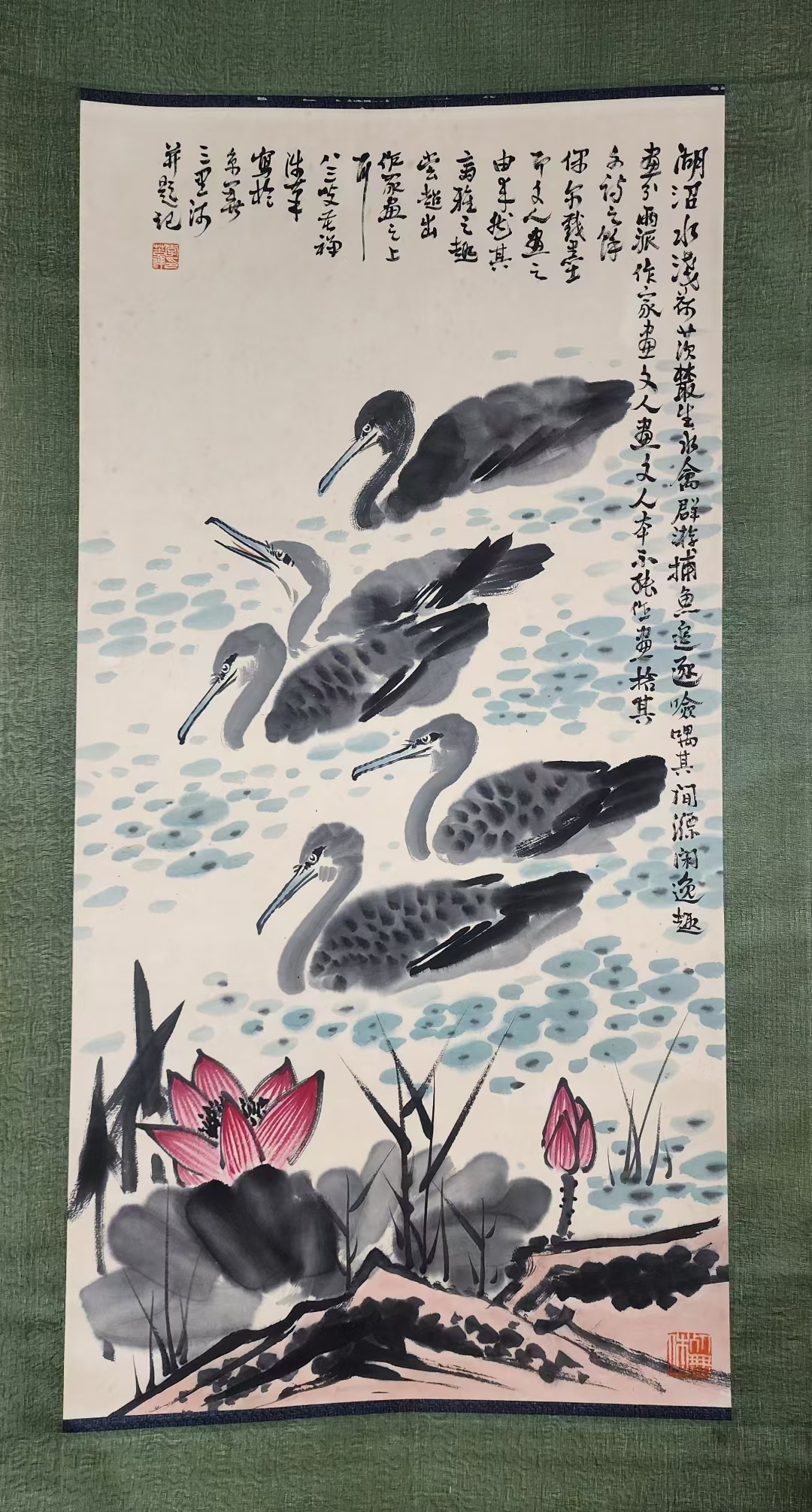 康宁荷花鸬鹚,4.5平,著名花鸟画家李苦禅之学生#康宁 #李
