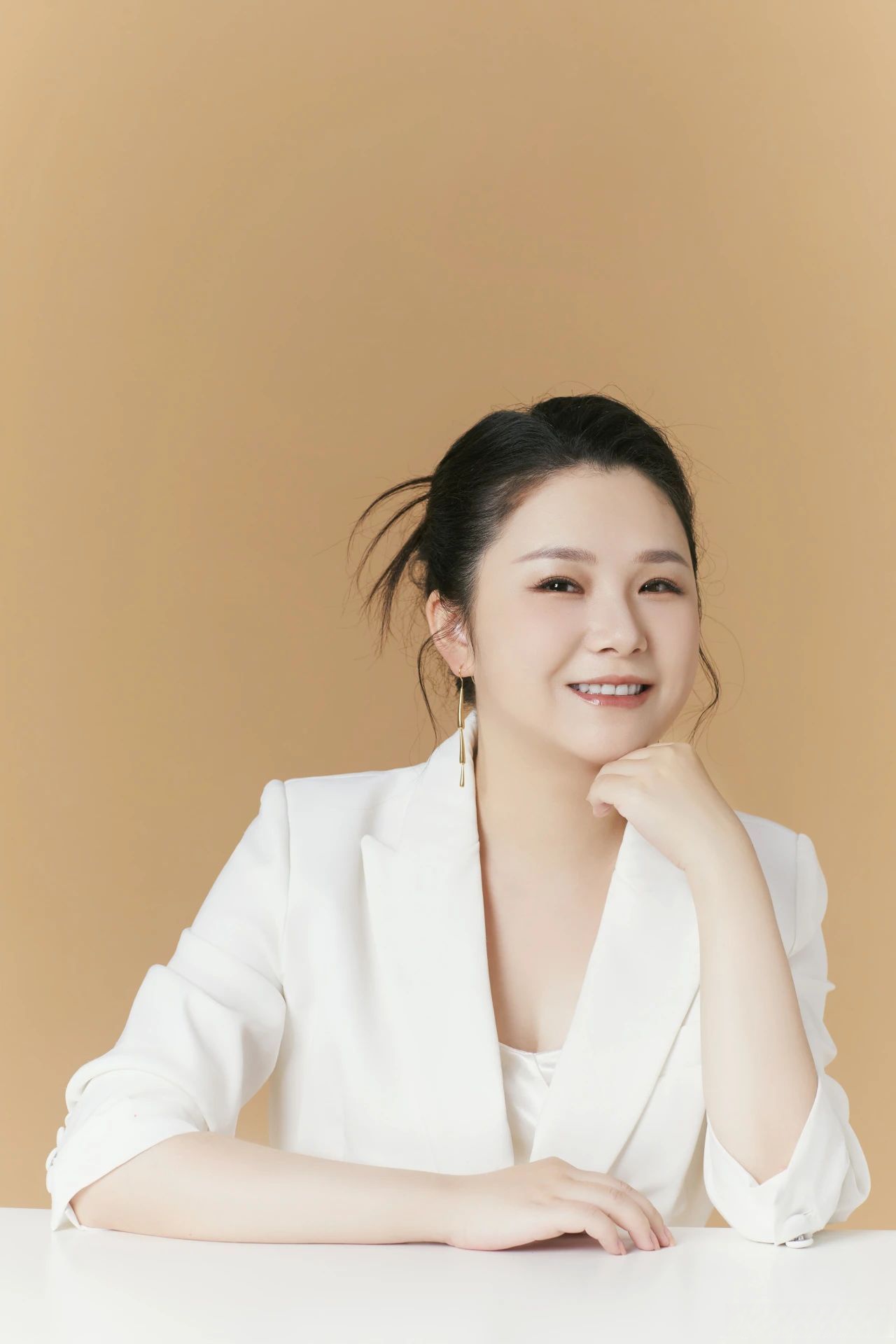 白纱轻披,如云朵悠然舒展. 发髻高挽,尽显优雅风范