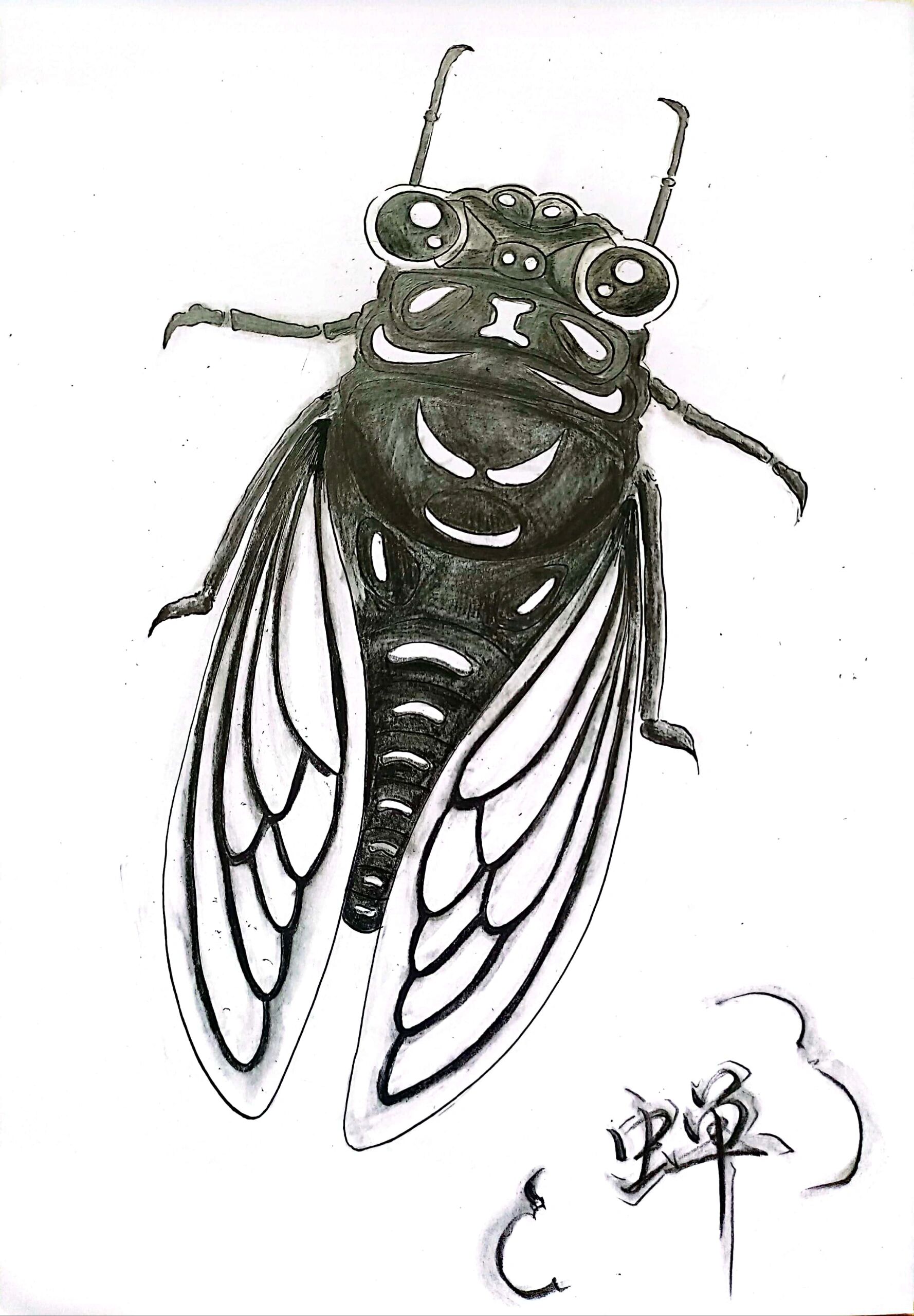 🌞夏日童年记忆:知了简笔画教程🎨
