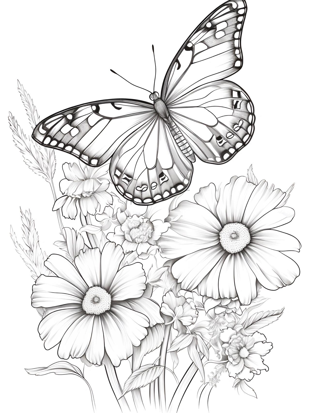 绘画步骤分享:蝴蝶与花的搭配