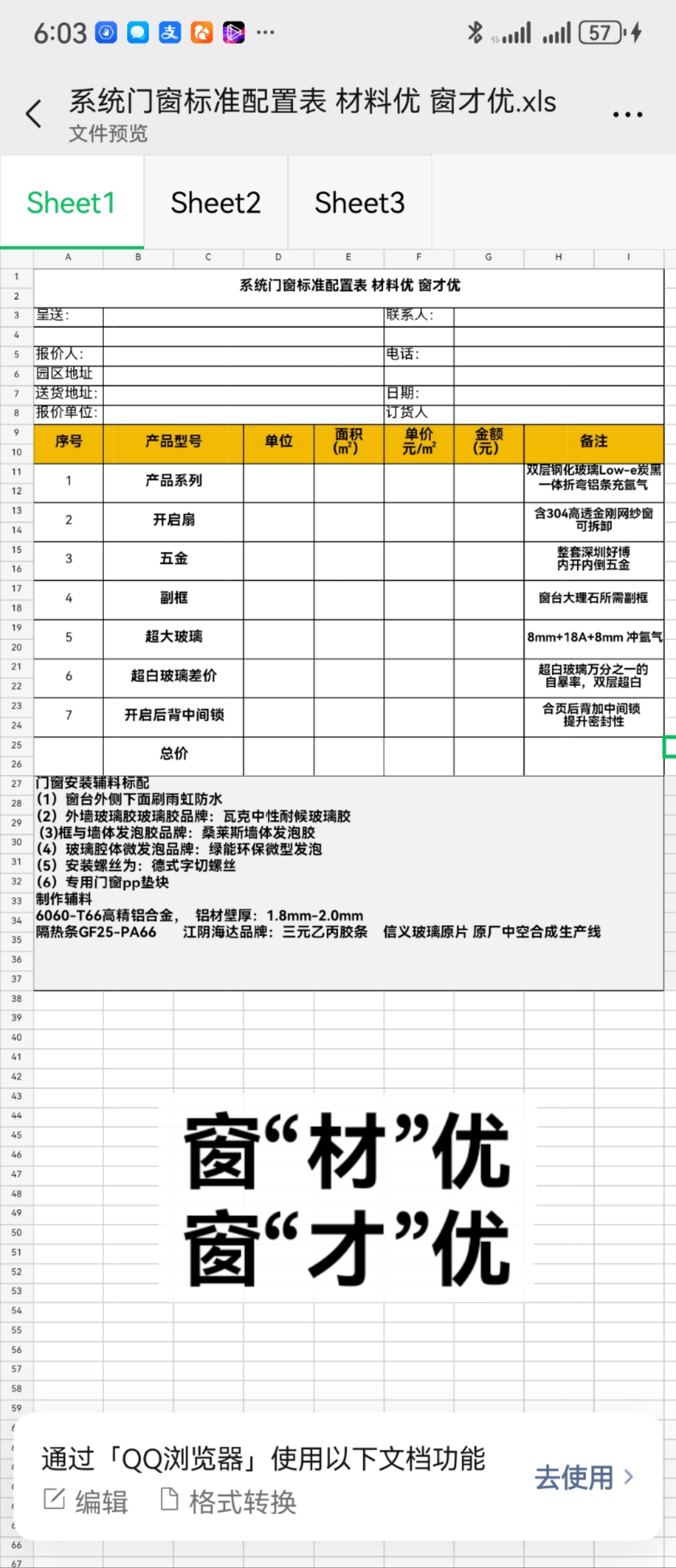 询价对比表