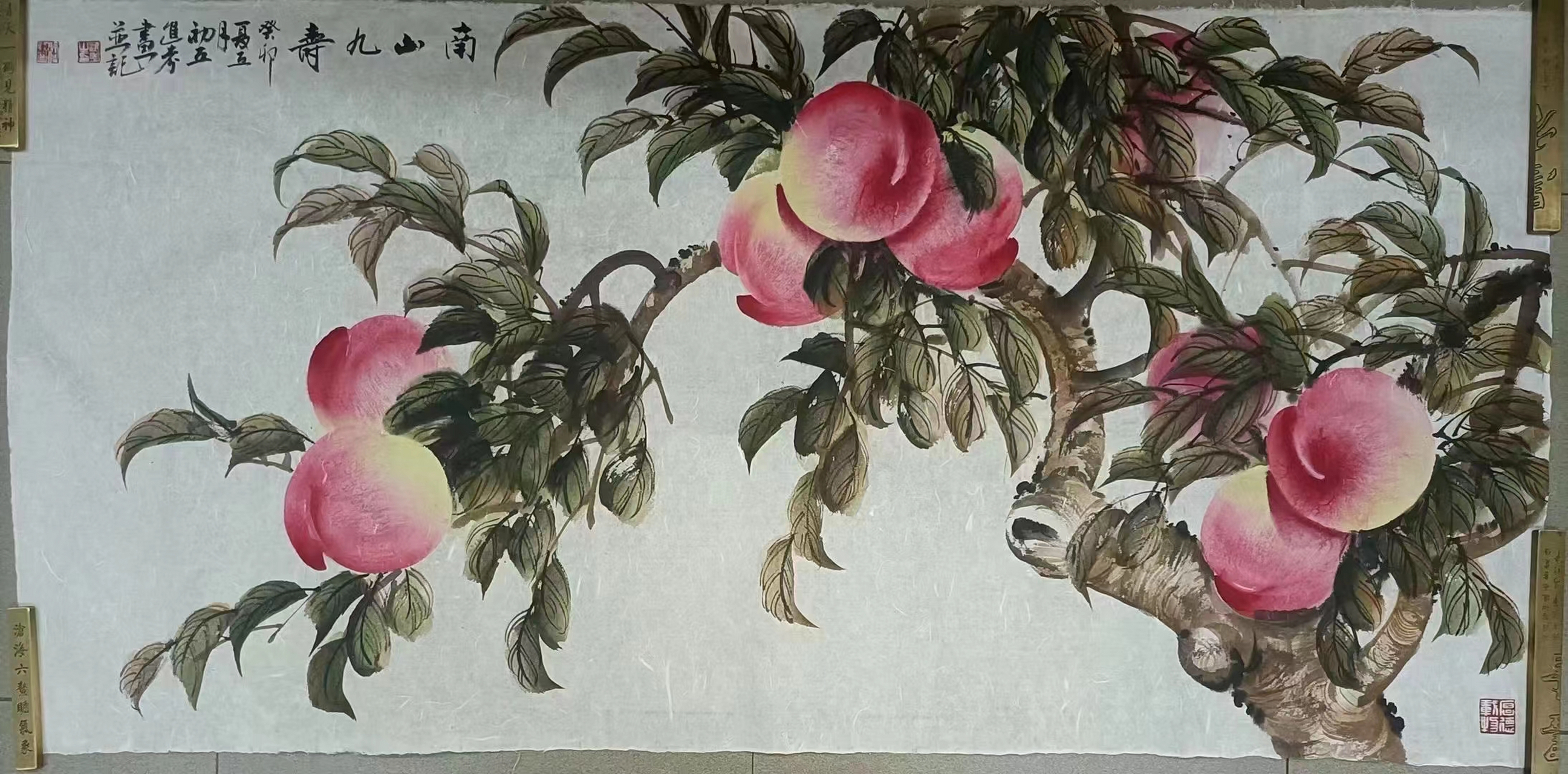 贾进考老师精品寿桃国画,品相完好,带老师合影视频