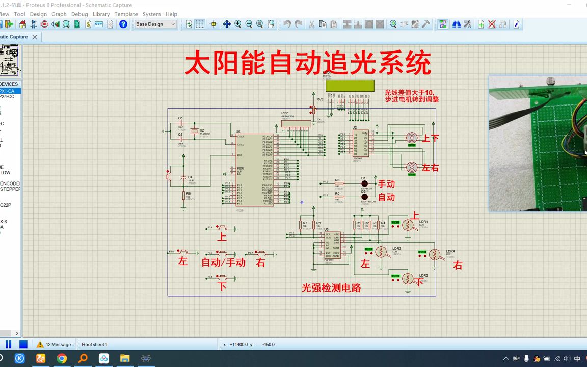 基于单片机太阳能自动追光系统全套proteus仿真原理图程序说明书